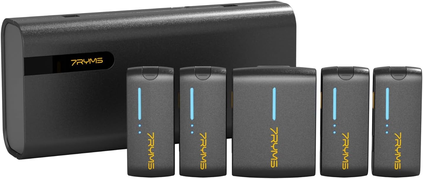 7RYMS iRay DW40 Wireless Lavalier Microphone with Four Transmitters One Charging Case Support AI Denoise, 48kHz/24bit Recording for Video Vlog, Interview, Live Streaming, Podcasting-Black