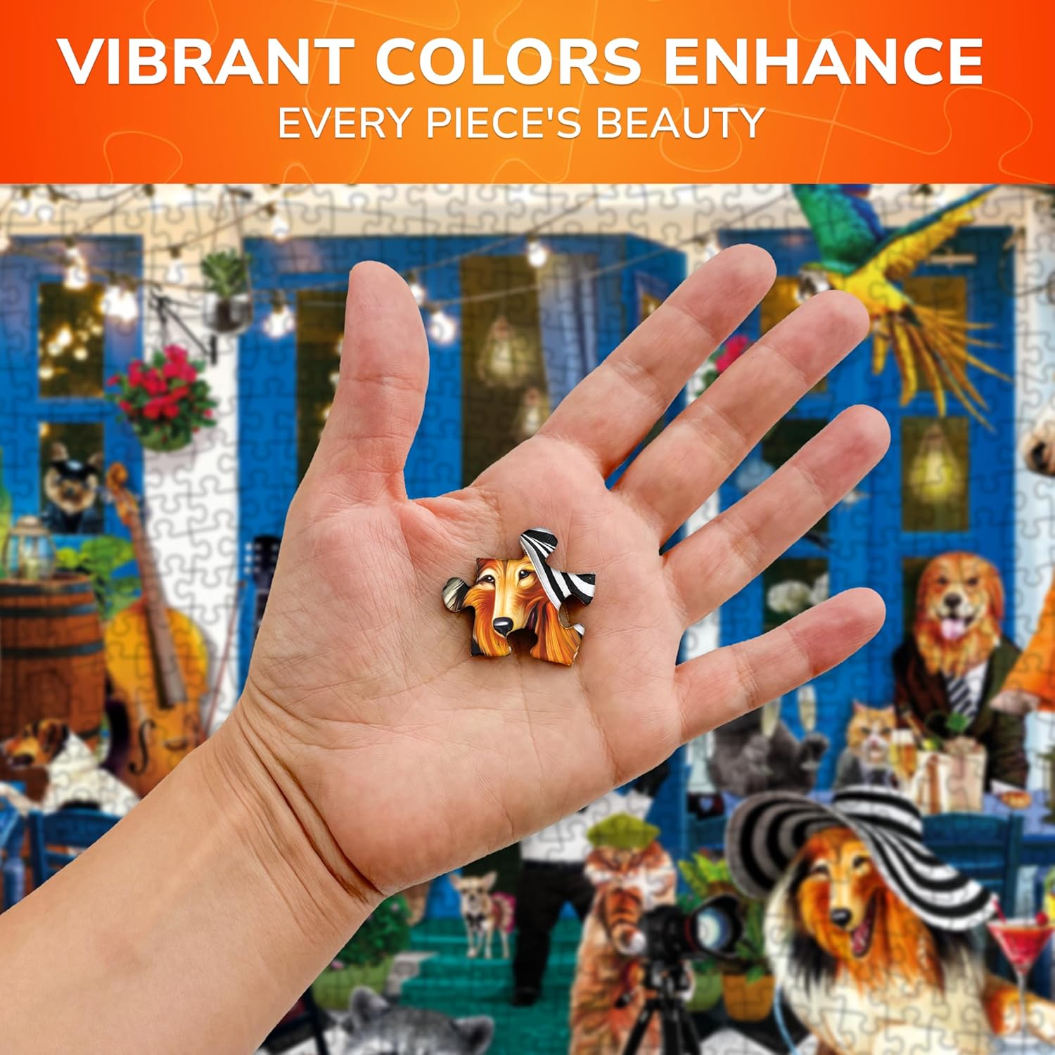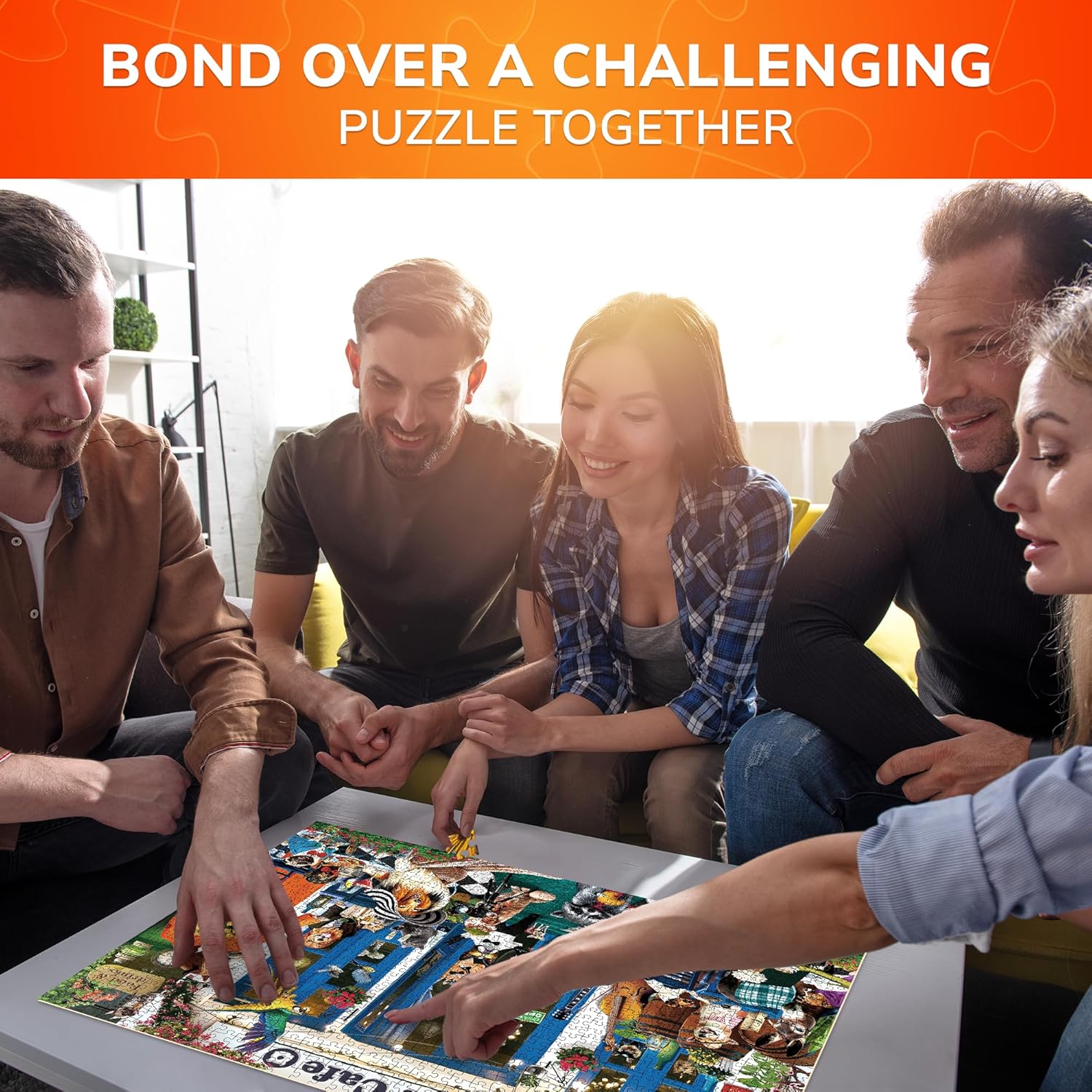 - ARTISTIC COOL PUZZLES: colorful and detailed our 1000 piece puzzles are interesting even for kids ages 8-10; jigsaw puzzles become great activities for whole family; Finish and enjoy amazing scenes of animal puzzles at a barbeque, kitchen, and café