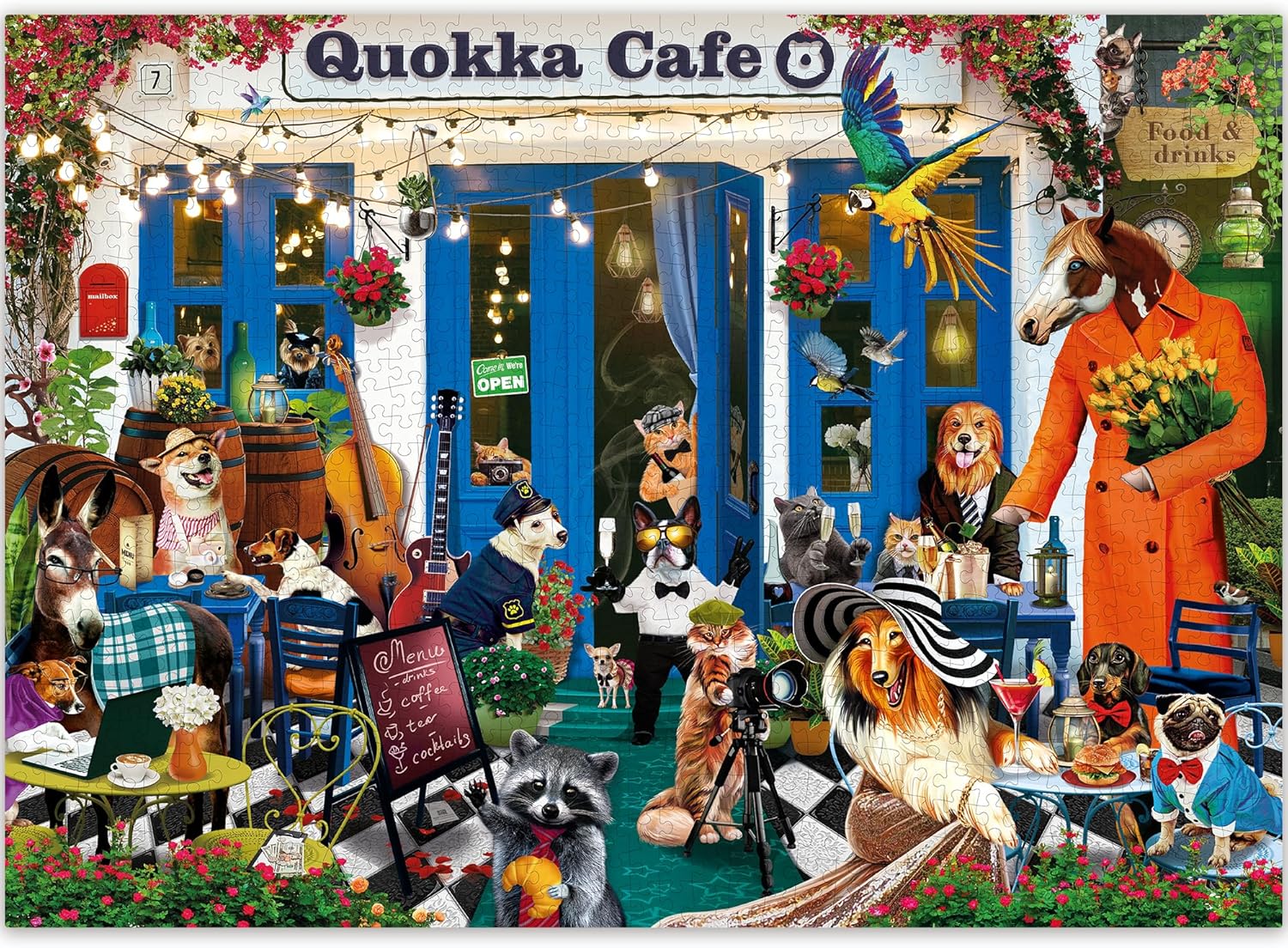 QUOKKA 1000 Piece Puzzles for Adults and Up - Jigsaw Puzzles for Men and Women - Funny Animals in Cafe for Kids Ages 8-12 and Up - Colourful Game Toy for Family