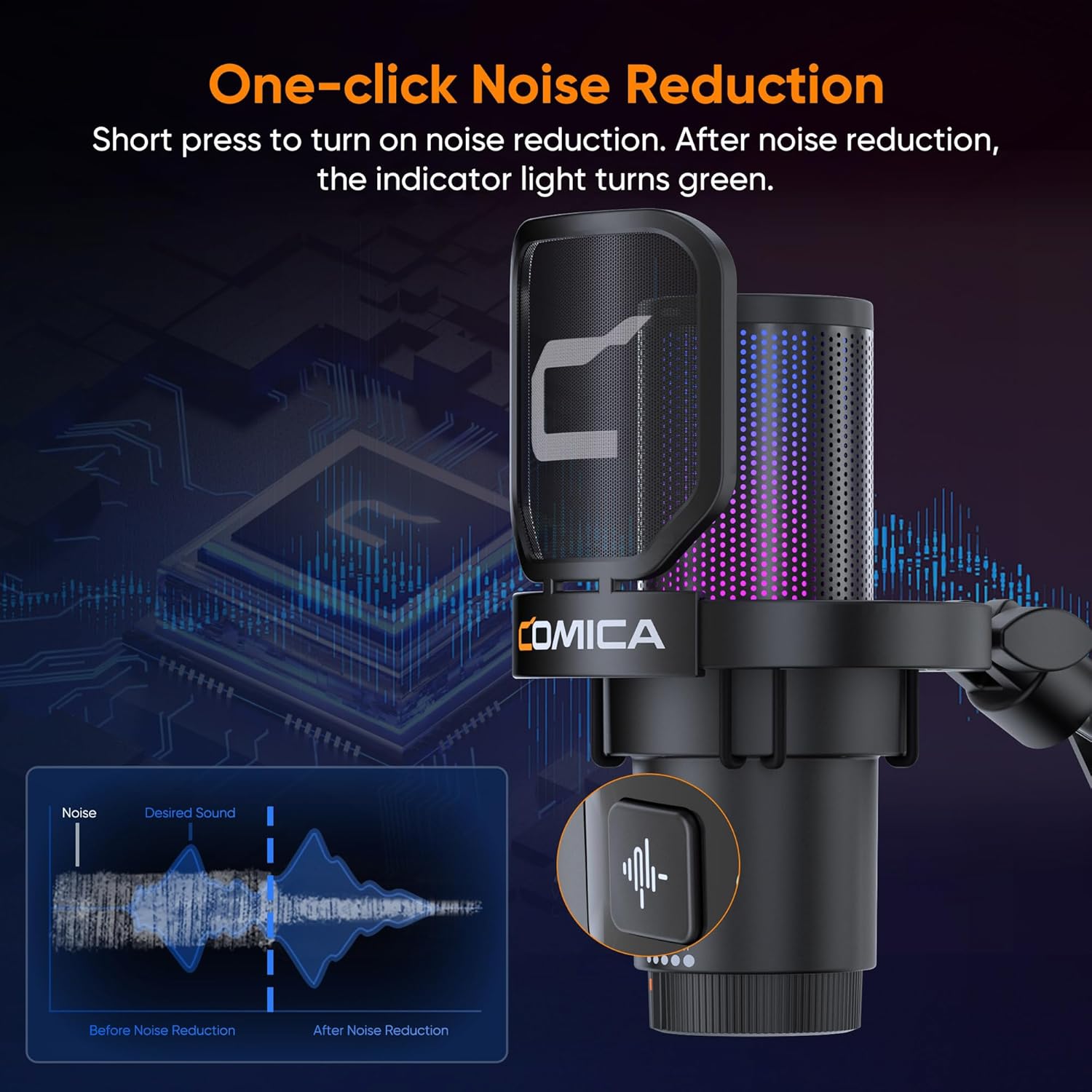 - ăHigh Fidelity and ClearerăComica gaming microphone has CalMix noise reduction technology and cardioid pickup pattern, which can effectively eliminate background noise; at the same time, the 48kHz/24bit USB microphone can clearly capture sound details, whether it is live streaming or recording of games. It can bring you ultra-low noise and high-fidelity sound, allowing your recording to reach professional studio-level quality.