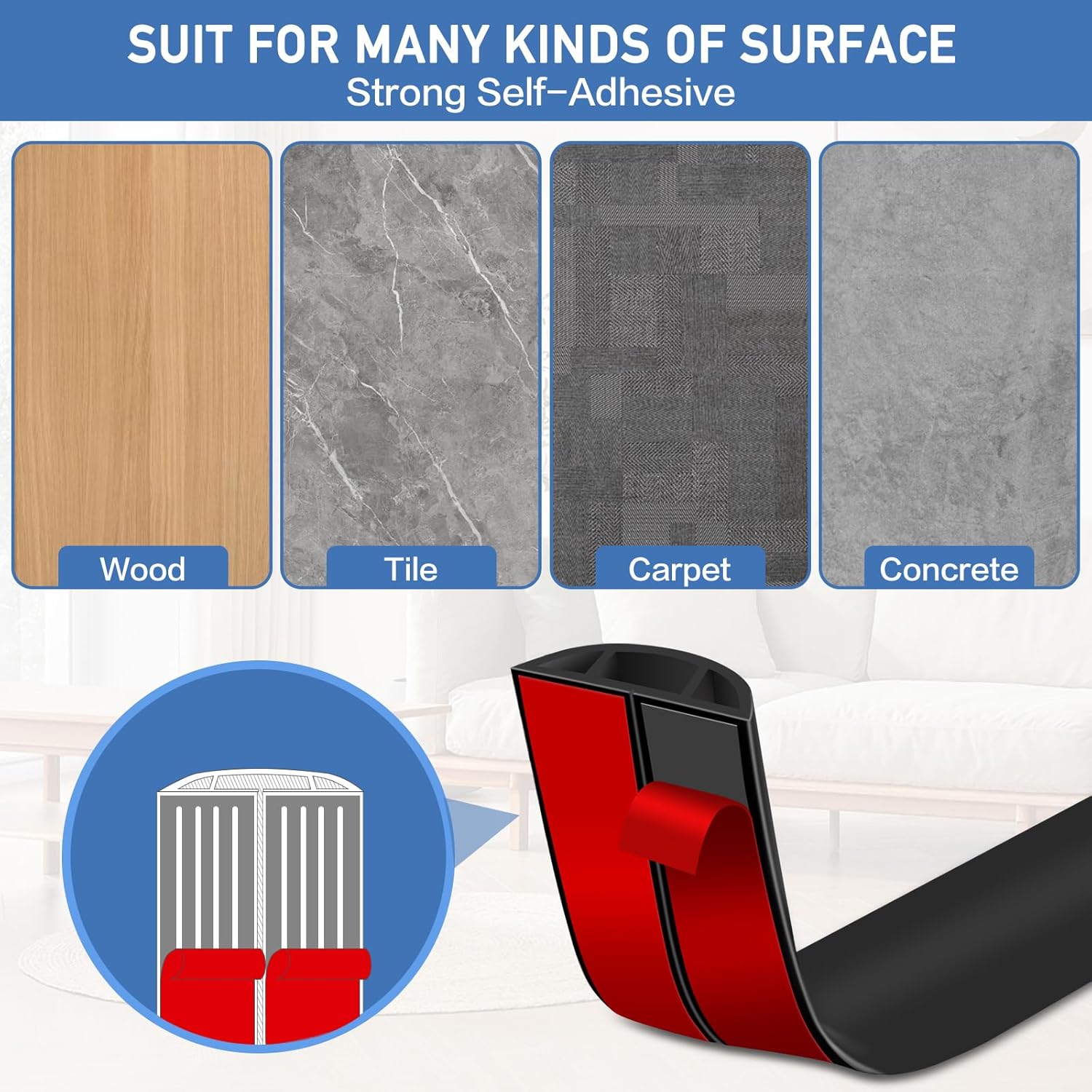 - Strong Adhesive Backing: The cord cover floor has a strong adhesive tape, making installation easy. Simply cut the desired length and place the wire in the channel. Peel off the film and stick it to any floor or wall edge, including hardwood floors, tiles, or carpets.