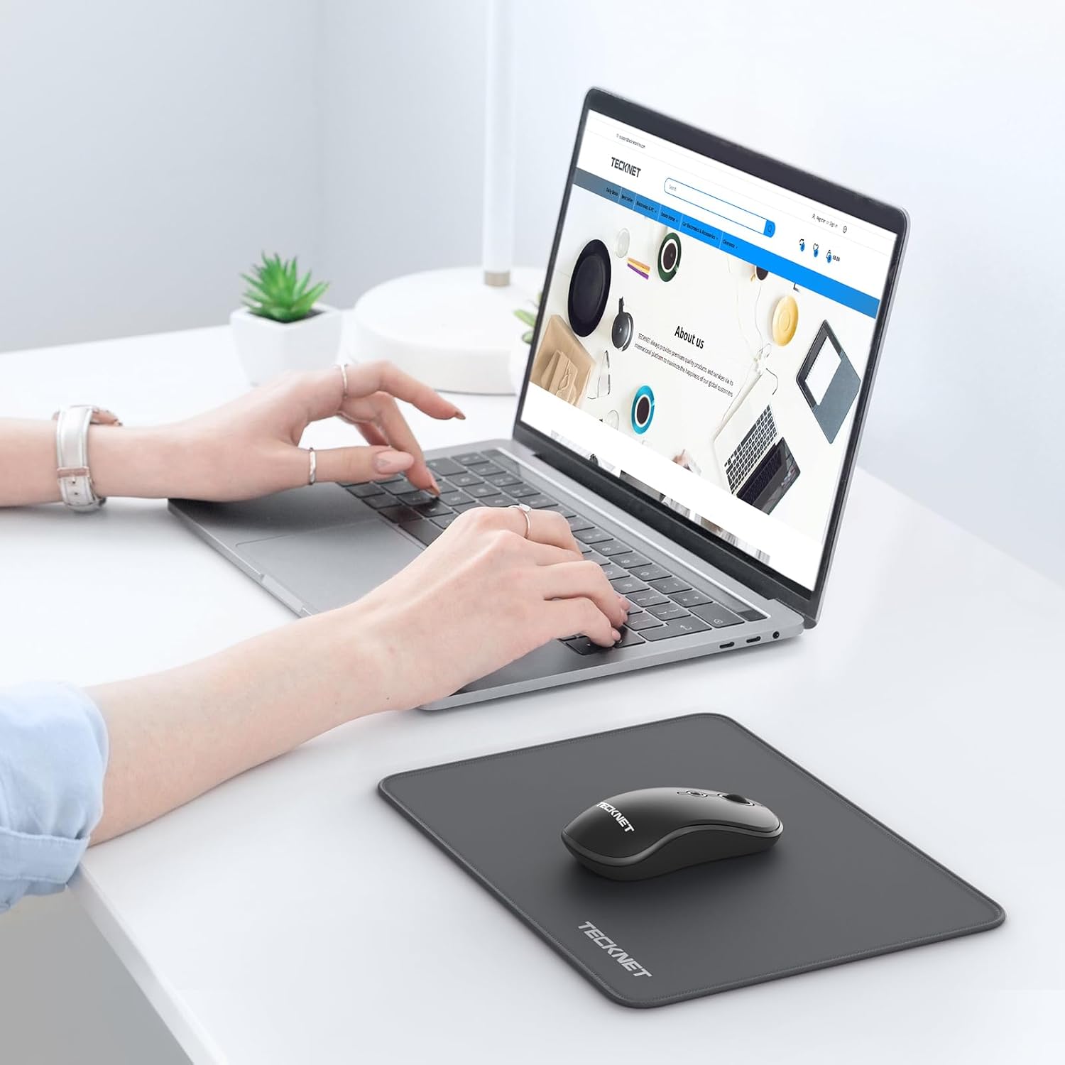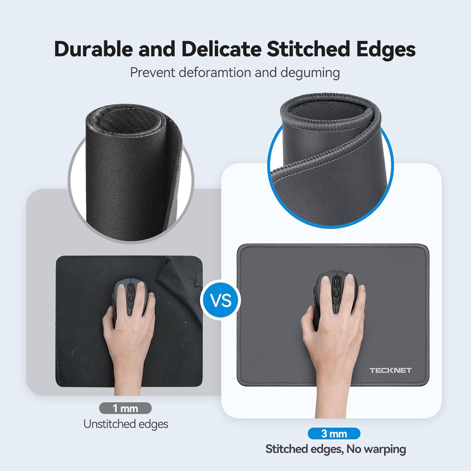 TECKNET Mouse Pad with Anti-fray Stitchin, Waterproof Surface & Non-Slip Rubber Base with Stitched Edges Gaming Mouse Mat for Laptop,Compatible with Laser and Optical Mice - Dark Gray
