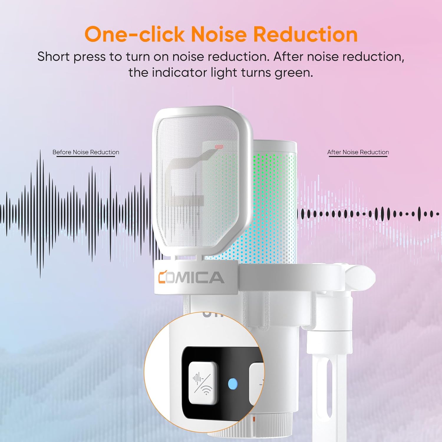COMICA EJoy Uni Pro Wireless USB Condenser Gaming for PC, PS4, PS5, USB C Phone and Mac, RGB Computer Mic for Twitch, Streaming/Podcasting/YouTube, Noise Cancellation Mic with Mute, Gain, Monitoring