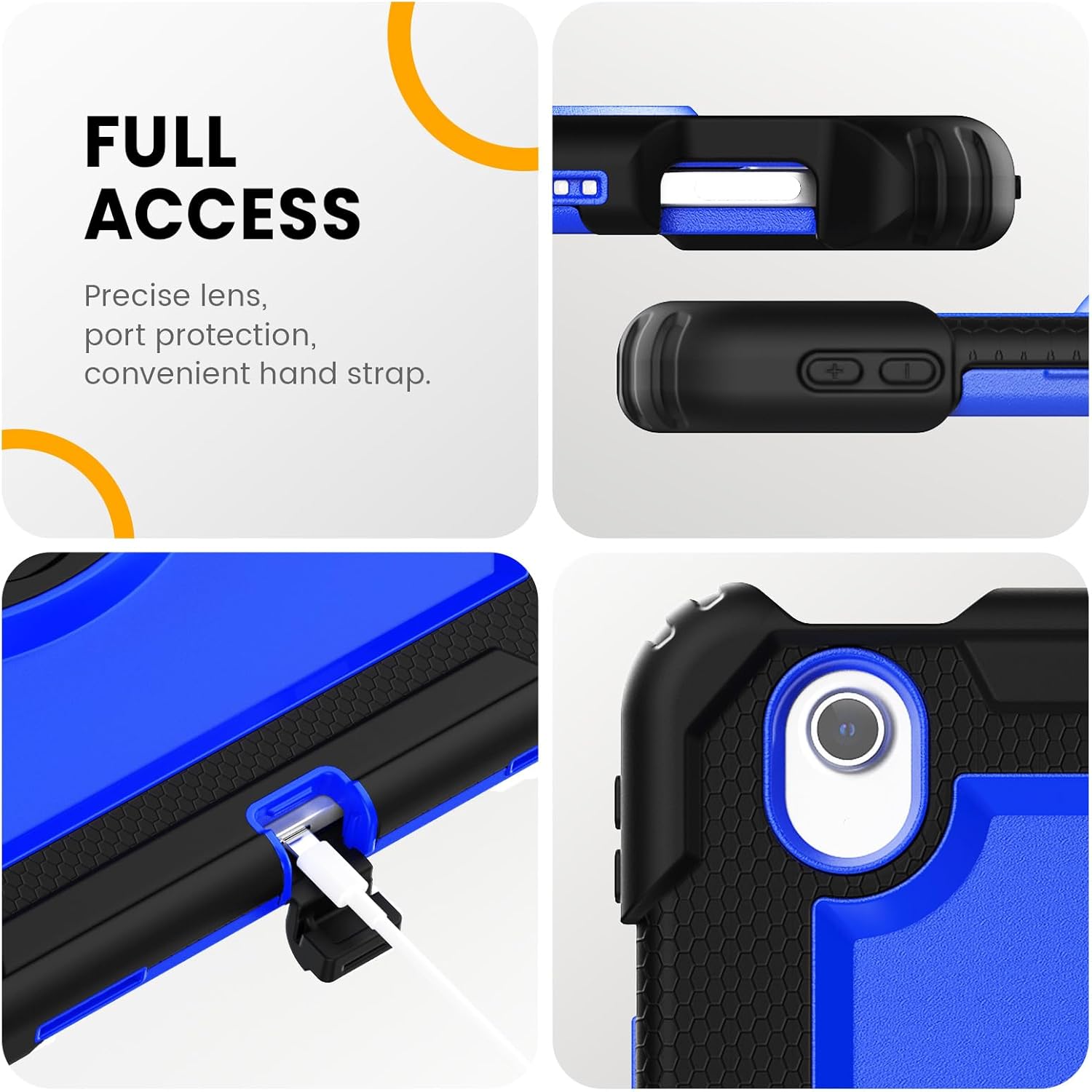- MULTI-ANGLE FUNCTIONALITY: 360° rotating stand with 5 positions for video calls, notes, or viewing; Detachable shoulder strap for commutes; Anti-slip hand strap secures during outdoor work; Dedicated pencil holder for hiking/transport