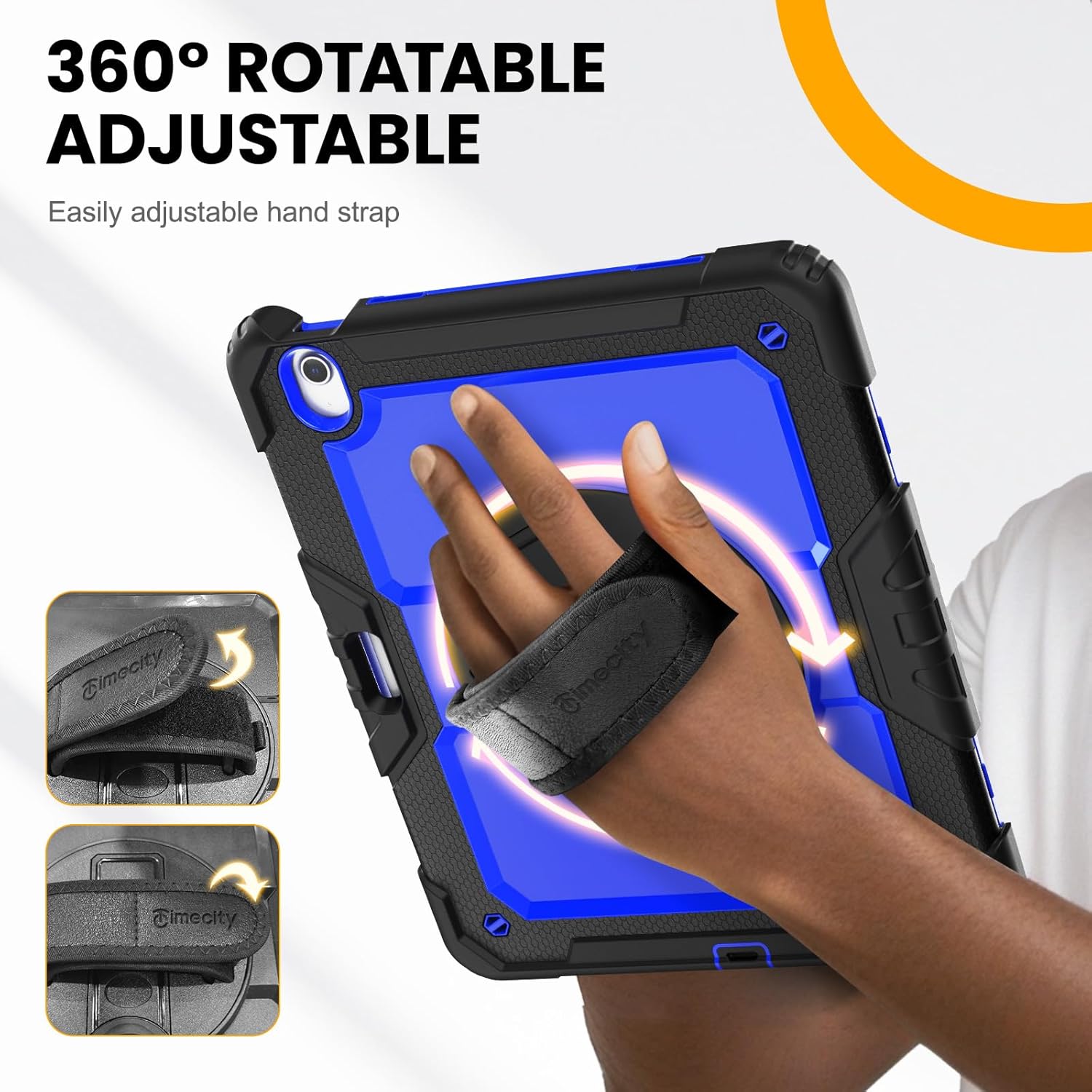 timecity for iPad Air 13 Inch Case M3 2025/ M2 2024, 360° Rotating Stand, Pencil Holder & Wireless Charging, Shockproof with Screen Protector & Shoulder Strap for Designers & Professionals, Dark Blue