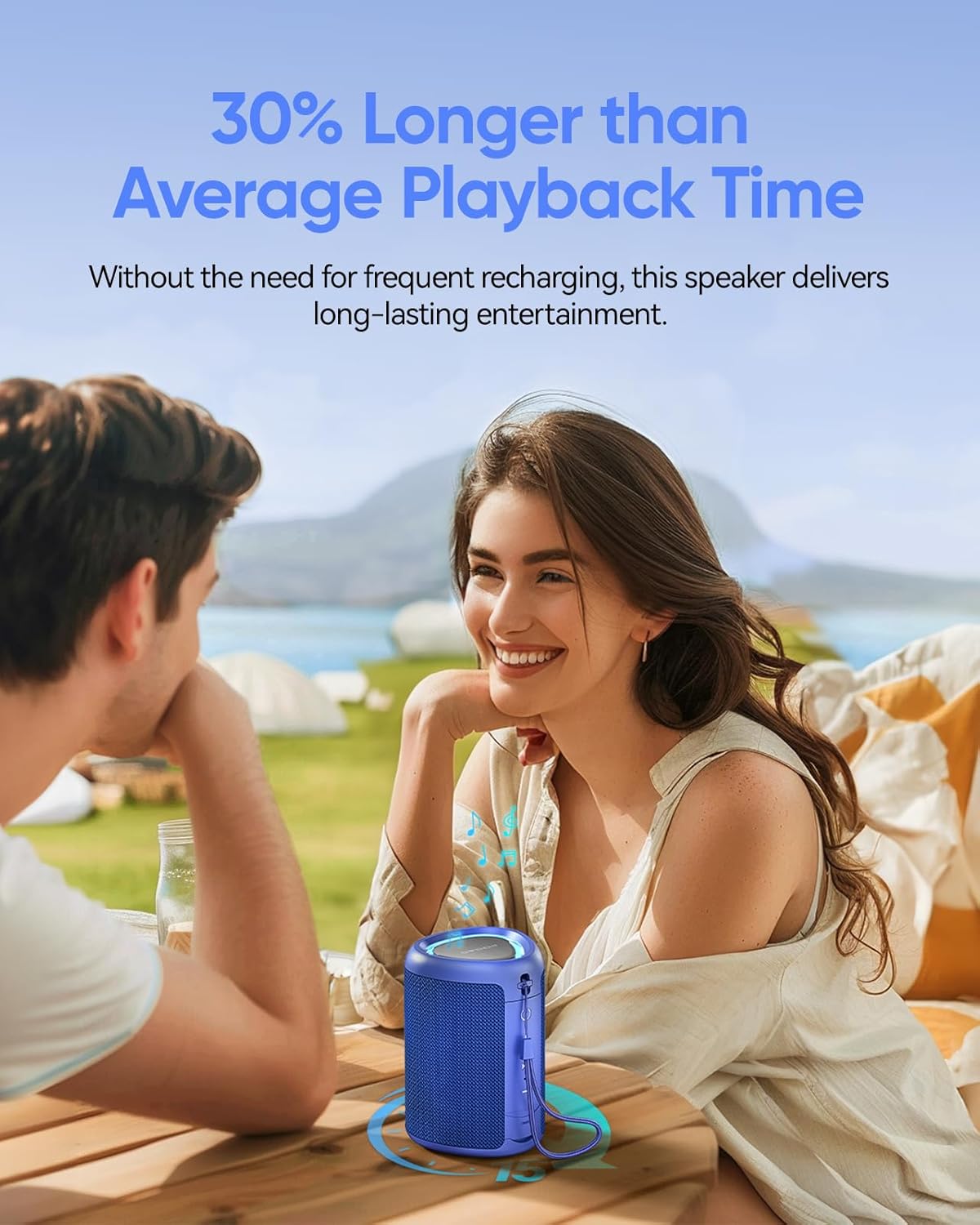 - ăImmersive Soundă: Experience stunning 15WïŒ20W peak) sound in a compact design. With zero distortion audio, this Bluetooth speaker delivers loud highs, crisp midrange, and full bass for an immersive listening experience. With up to 15 hours of playtime on a single charge, enjoy your favorite tunes all day and night without interruption