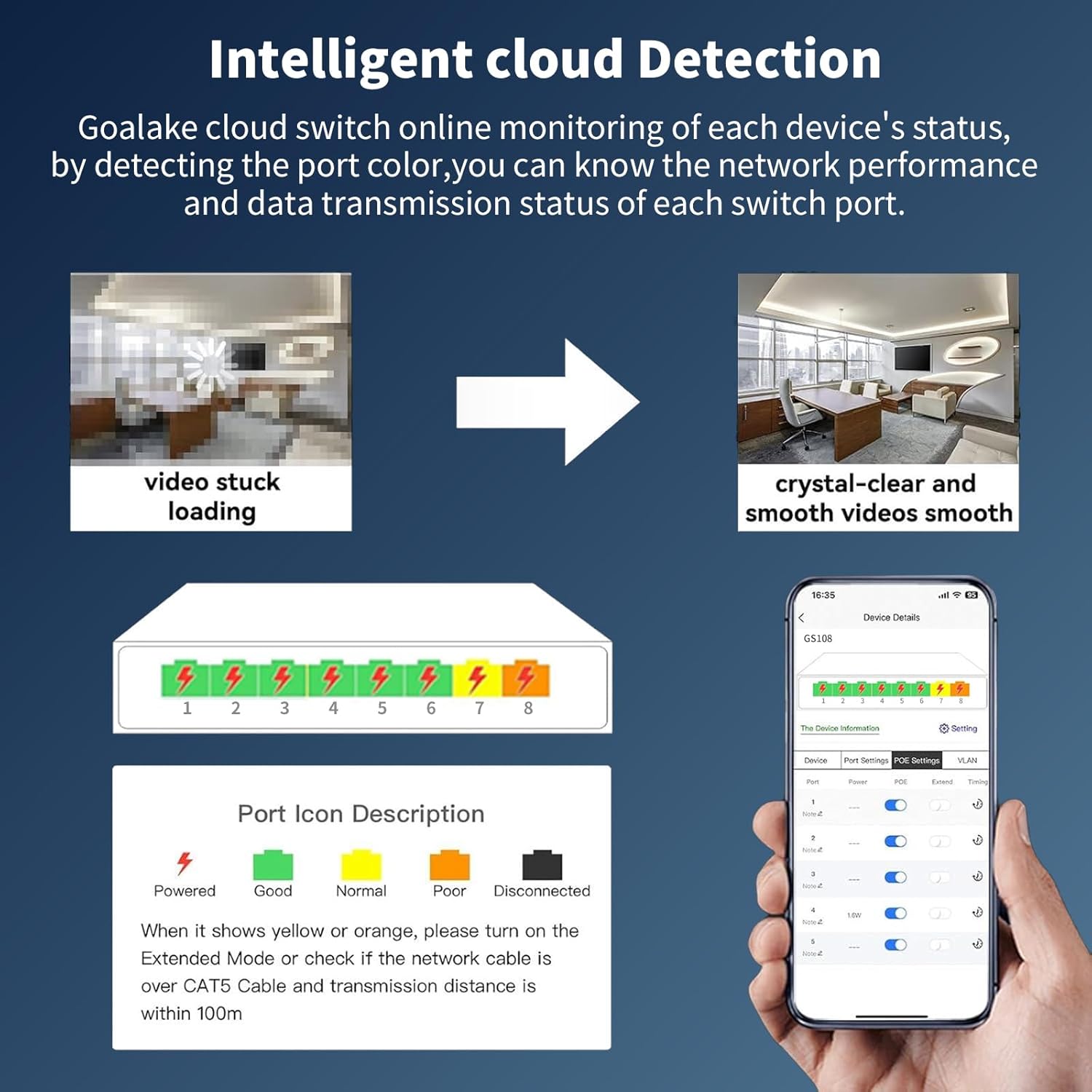 - High Cost-effectiveness: Reduce setup time and ongoing maintenance costs with our plug-and-play Cloud Managed Switch. You only need to spend the price of ordinary switches to purchase our switches with cloud management function. Our cloud management switches provide an intuitive visual interface. When remotely managing the switches, you can have a clearer understanding of the network status and device configuration, and quickly locate and solve problems that occur on site without having to visit the site in person.