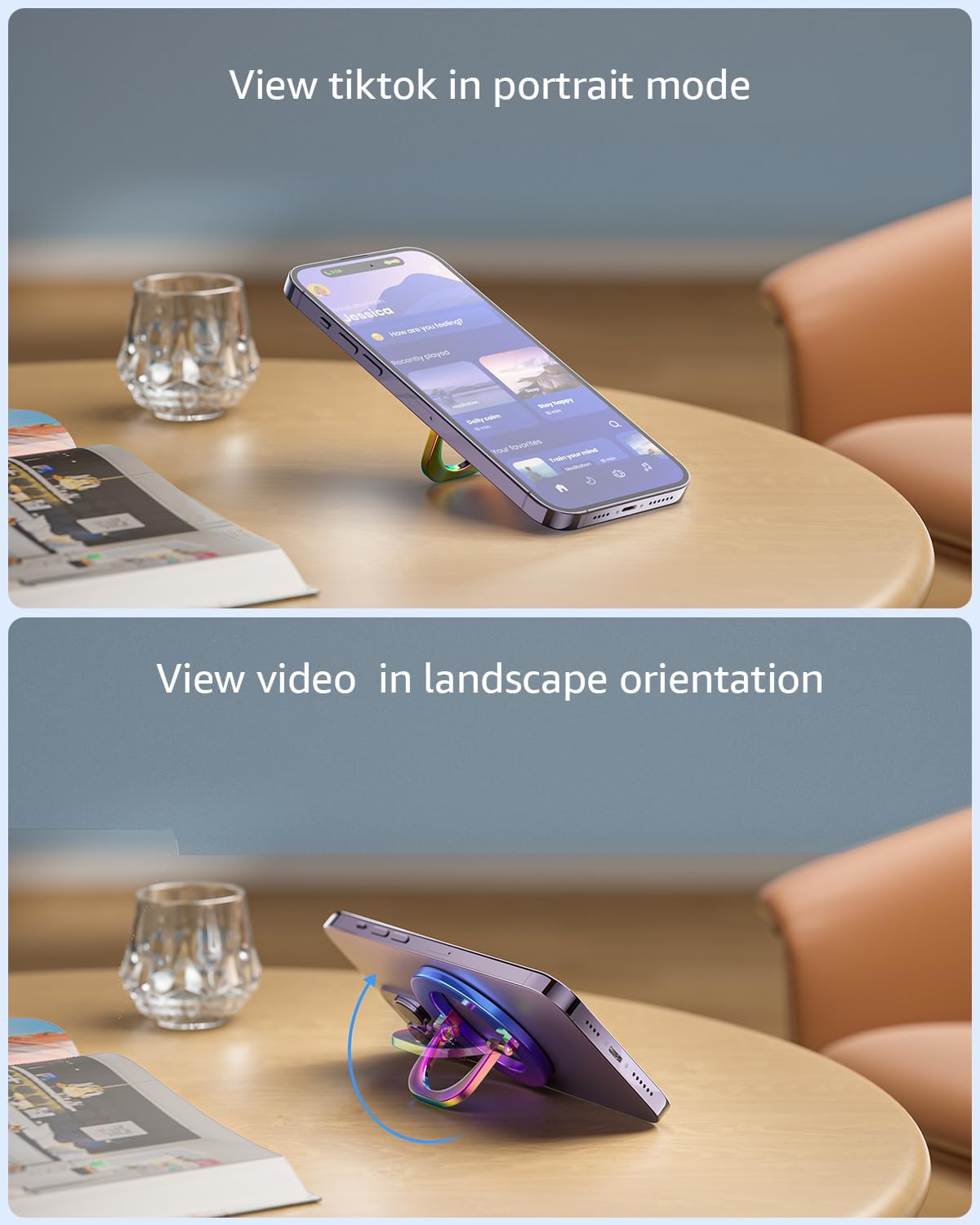 - 🧲2-IN-1 MagSafe Ring Holder: Simple and fashionable design combines the function of phone grip and phone stand, providing a comfortable grip at any angle. The adjustable Magnetic kickstand feature allows you to place your phone horizontally or vertically, turning it into a convenient phone stand.