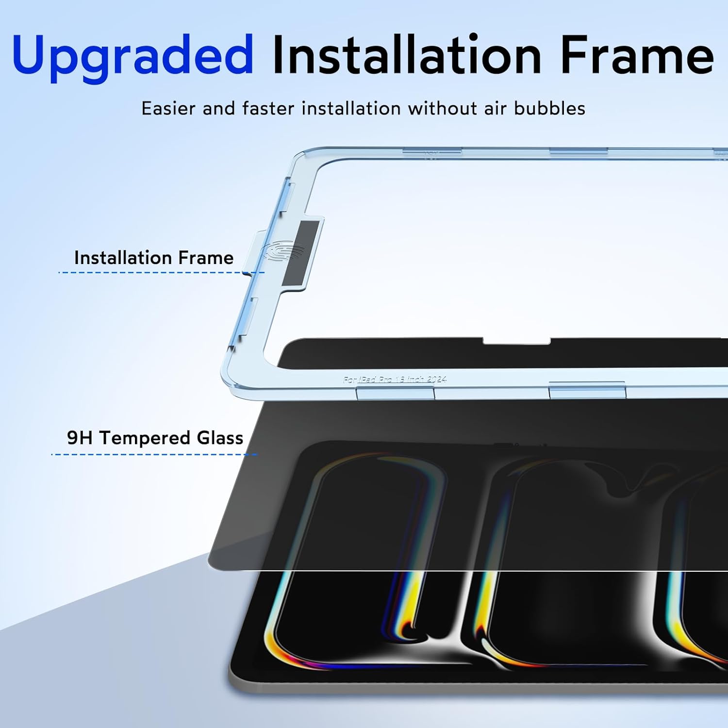 - Easy Application: With innovative installation frame, perfect 13 inch iPad pro screen protector applying is a breeze. Installation steps are convenient and quick, it is easy to achieve no bubbles, so that you have no trouble in the installation process