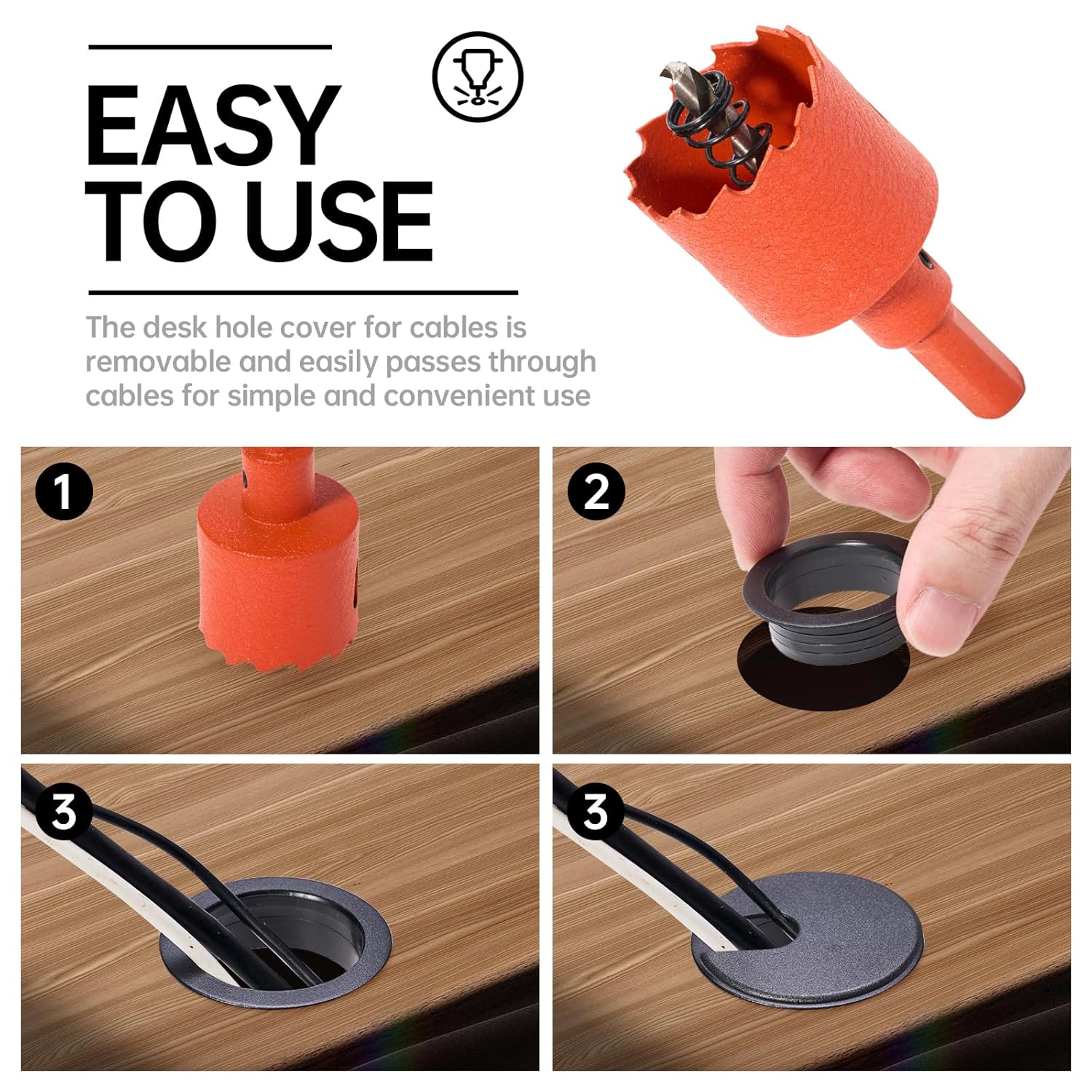 - 【Kit includes】10 Pcs black desk grommet 1-3/8inch(35mm) comes. With 1-3/8inch(35mm) Hole Saw.