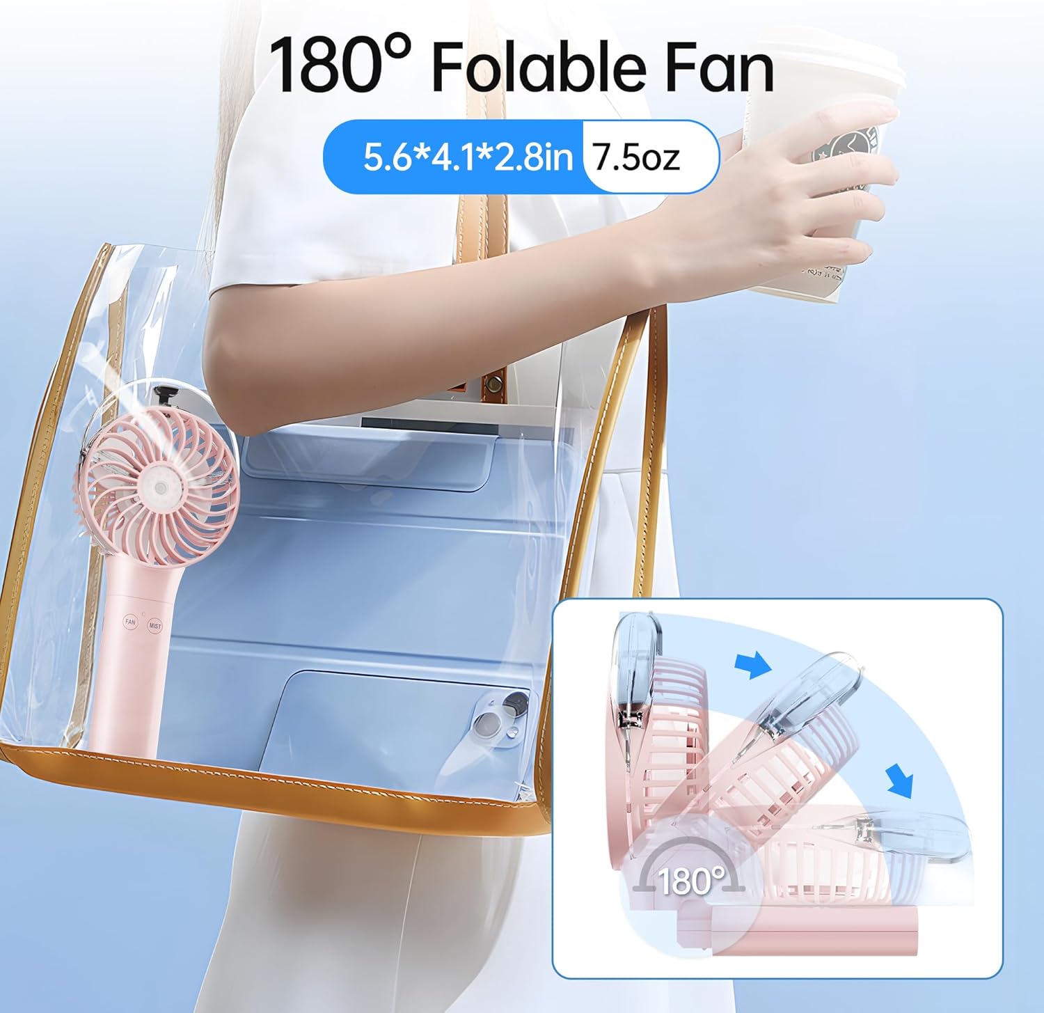 - 【Foldable and Versatile】 Designed with 180° adjustable flexibility, this portable misting fan can be used as a handheld fan, folded and packed in a bag, or placed on a table, allowing you to direct the cool airflow from any angle