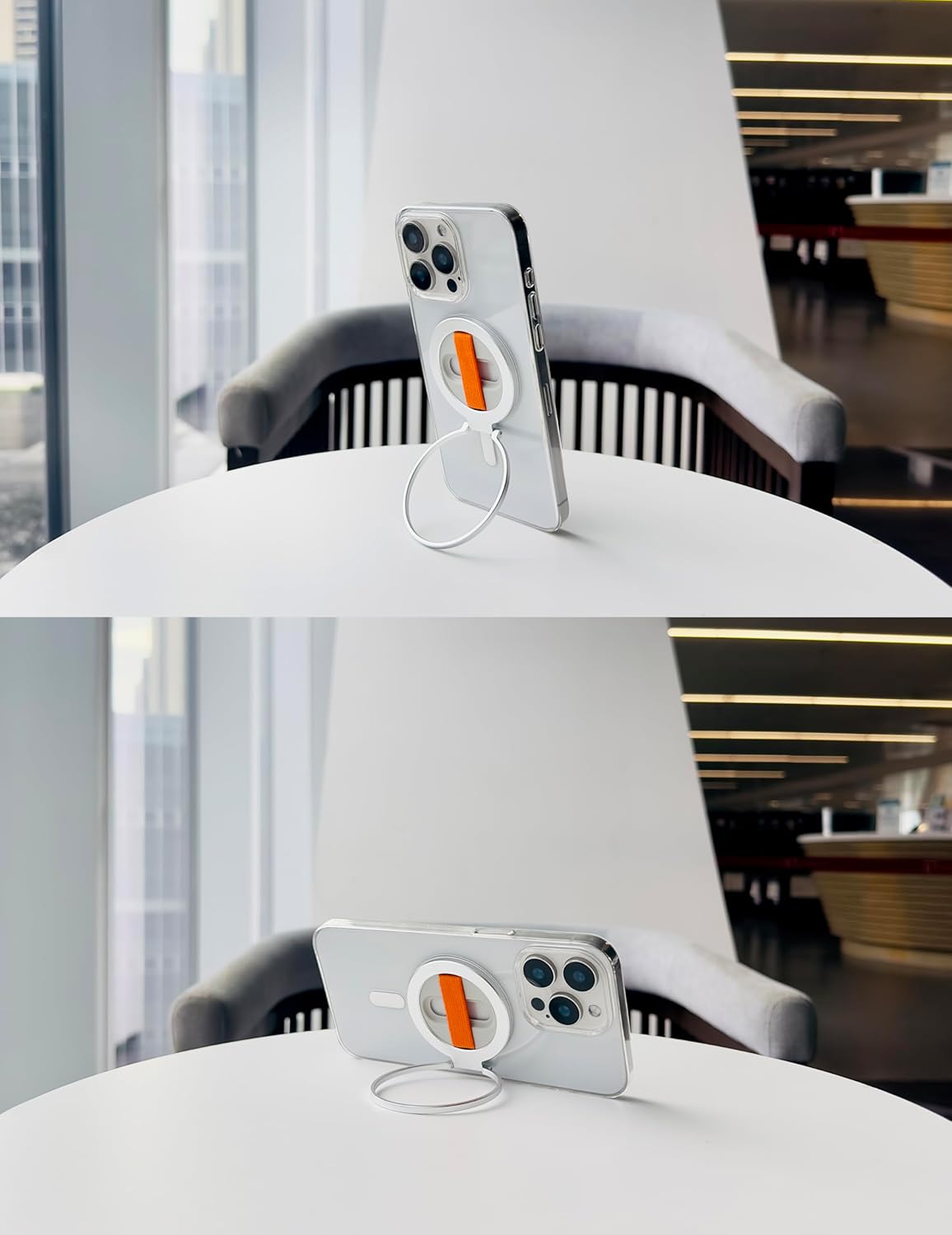 - 【Dual-sided Magnetic - More Snap Bridge】This innovative design incorporates super-strong N52 dual-sided magnets to make both sides of the stand super-functional! The stand can be securely attached to the MagSafe case and used on any magnetic metal surface, including car mounts, fitness equipment, refrigerators, and metal shelves. One metal plate are included as a gift, allowing the stand to be snapped to any non-magnetic surface, such as mirrors, bathroom fixtures, or wooden furniture.