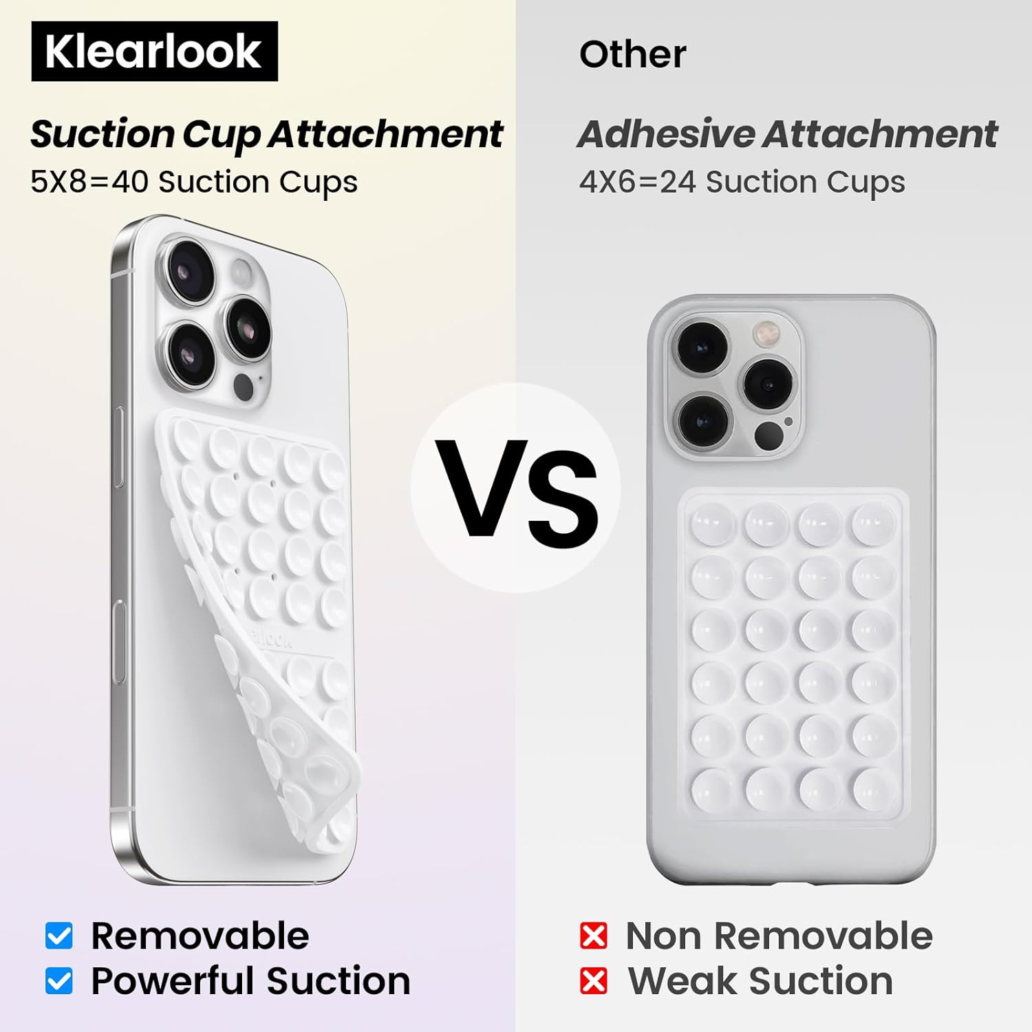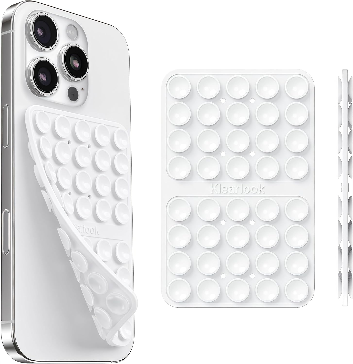 - 【Superior Adsorption】Klearlook sticky phone grip boasts 5 rows and 8 layers of independent suction cups, It offers stronger, more stable suction, so you don’t have to worry about your phone falling during use. Unlike single-sided suction cups on the market that attach to phone cases and can’t be removed, Klearlook double-sided phone suction grip can be taken off and used anytime, providing extra convenience.