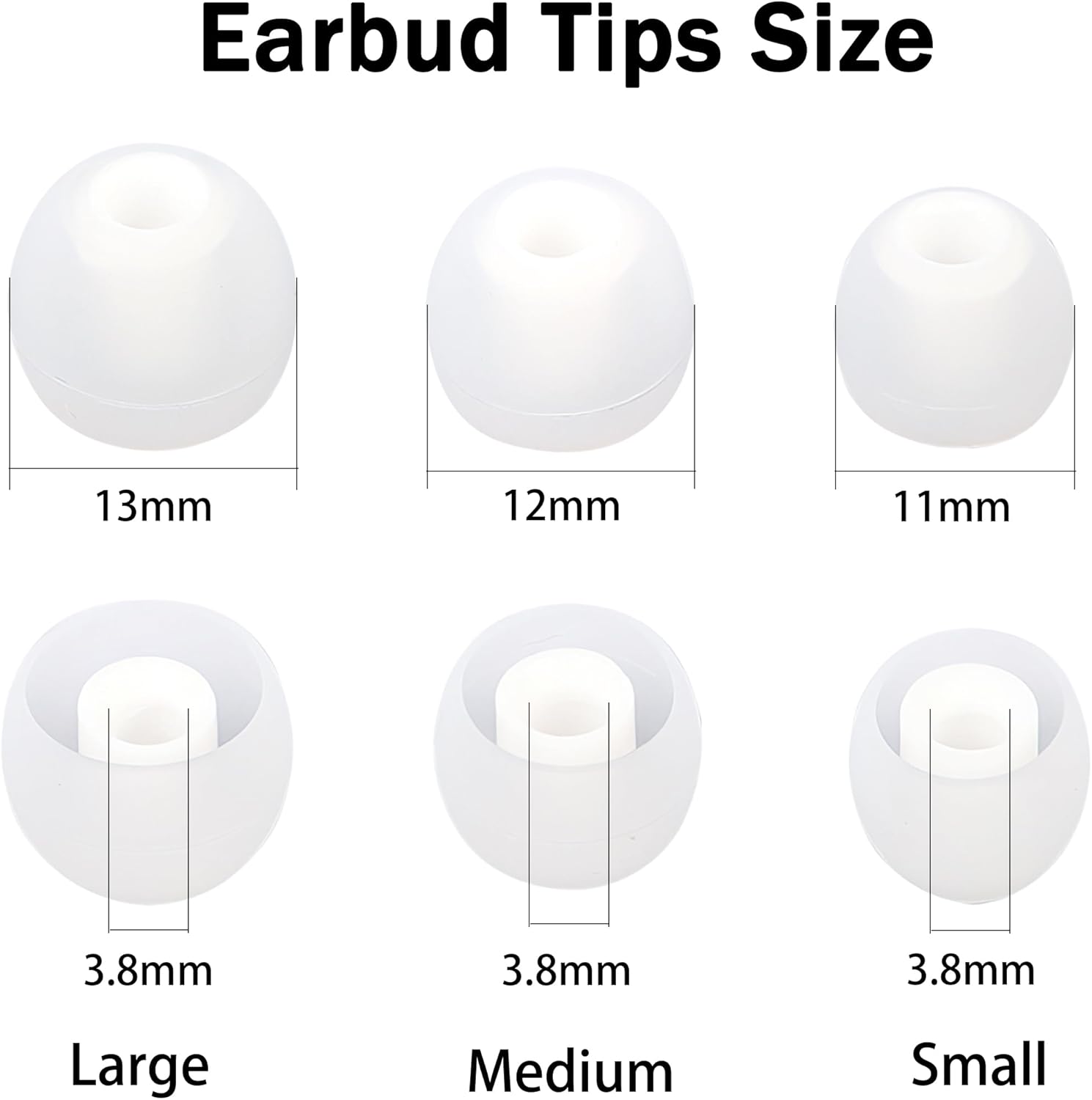 - 1.Silicone replacement earbud tips Fit Most In-Ear Earphone inner hole from 3.8mm-5.1mm(Not necessarily able to fit into a Bluetooth charging box).