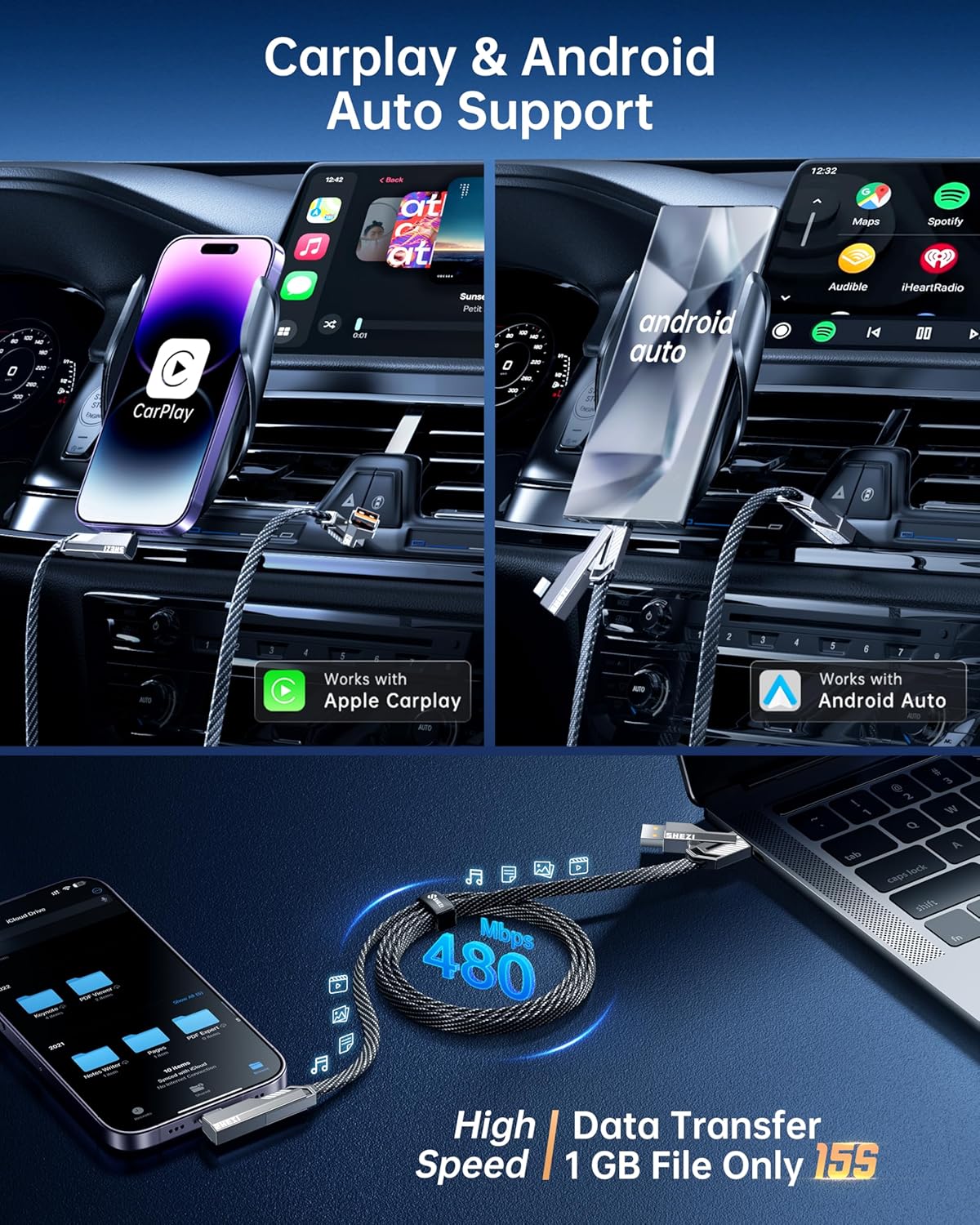 - Support Apple Carplay & Android Auto: Our usb c cable can work with Apple's official CarPlay and Android Auto System. Keeps stably connected during driving journey. Before using CarPlay, please confirm whether your vehicle supports the CarPlay system