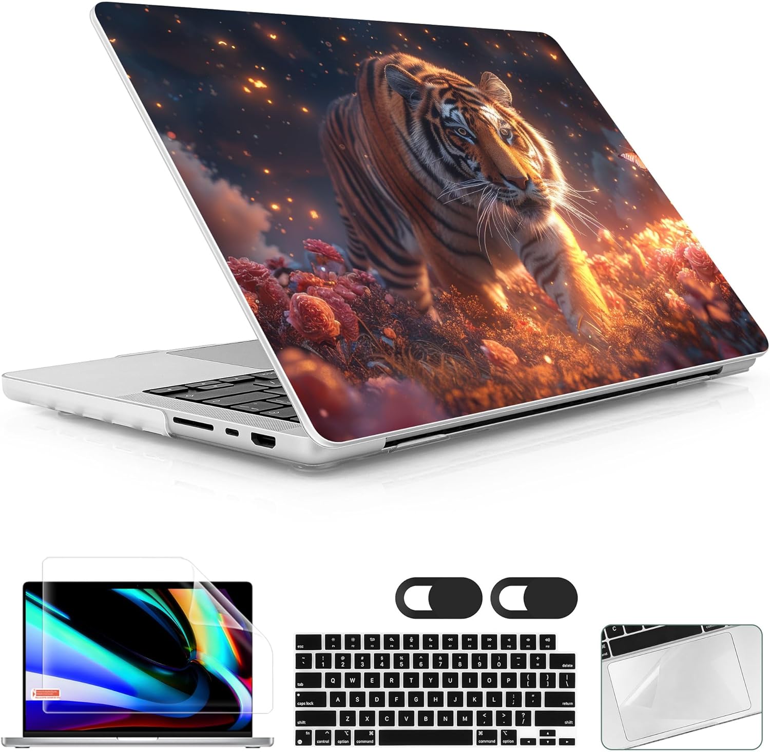 for MacBook Pro 16 inch Case 2021 2022 2023 2024 Release A3186 A3403 M4 A2991 M3 A2780 M2 A2485 M1 Pro/Max, Hard Shell Case with Screen Protector & Keyboard Cover, Dream Tiger