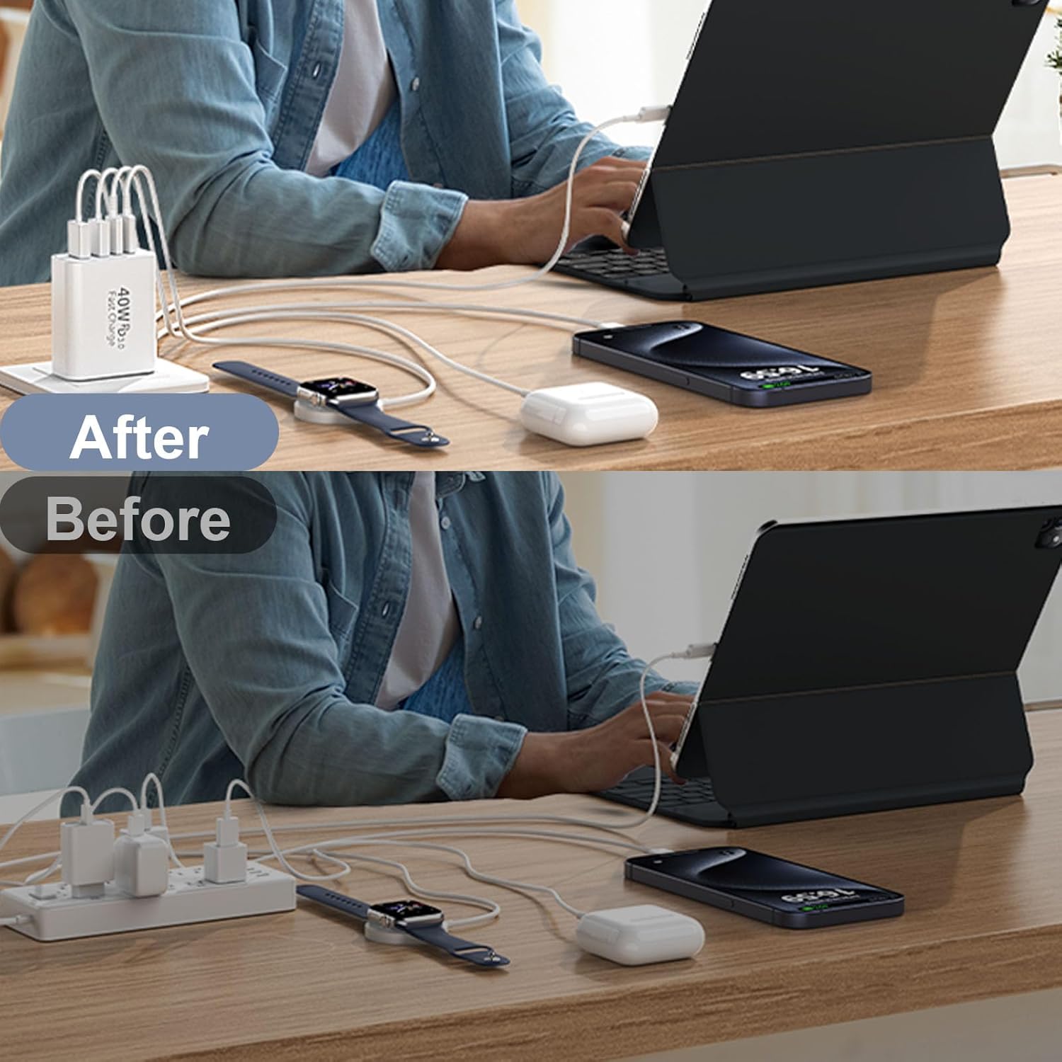 - Compact and Portable Phone Charger Brick: Designed with the pocket-friendly compact body and 4-port charging cube, the USB C box is integrated to charge multiple devices at home, office and travel. Small size saves you space and fits perfectly into pockets, handbags, travel cases. Packaged with dual 40W 4-port usb c wall chargers (cable not included). If you have any problems with the c type charger block, please contact us
