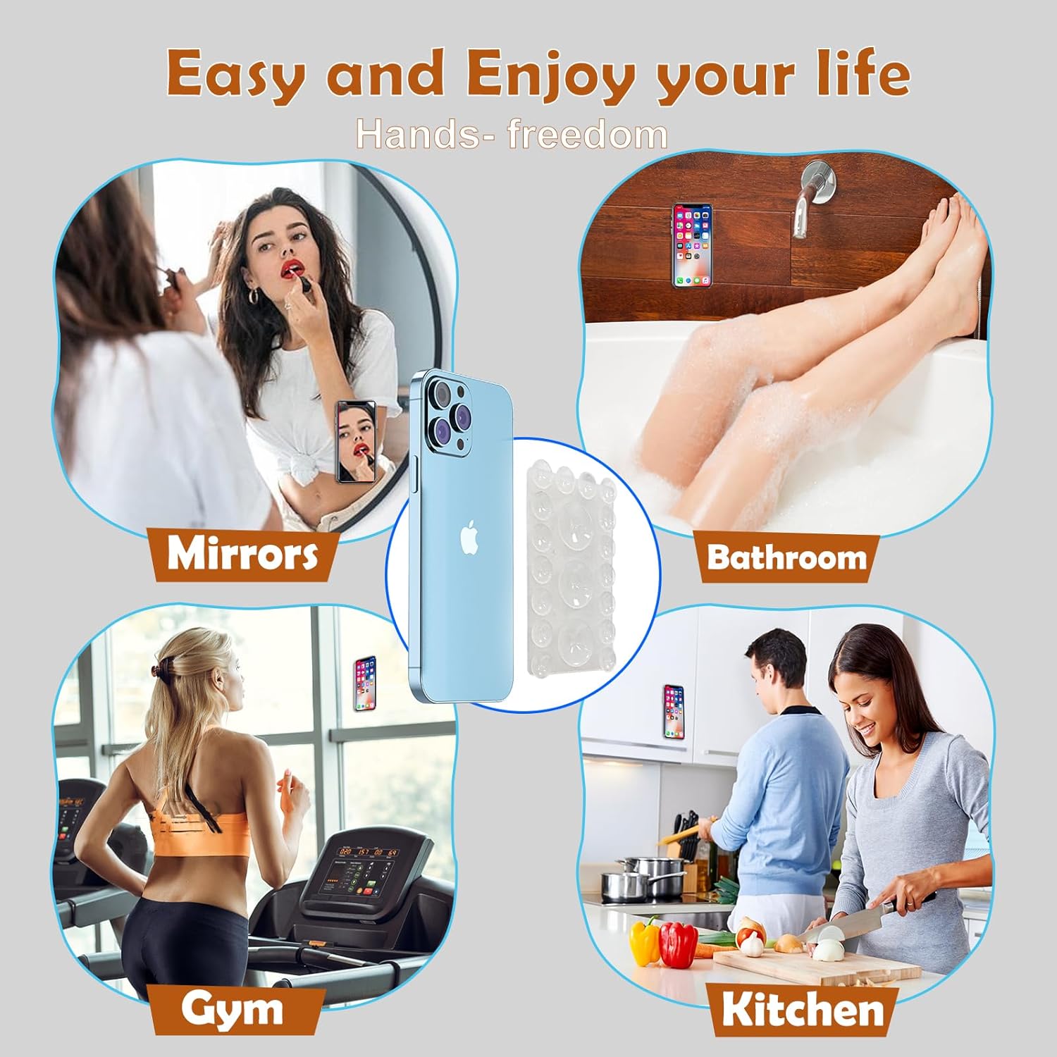 - 【Loved by Young People】You can easily stick your phone to the wall in the gym, locker room, kitchen, dance studio, garage, etc., freeing your hands to do what you like. For example, chatting while doing makeup, watching videos while cooking and washing dishes, watching timers while exercising, etc.