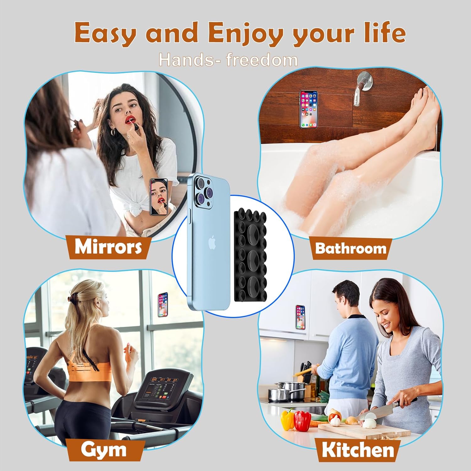 - 【Loved by Young People】You can easily stick your phone to the wall in the gym, locker room, kitchen, dance studio, garage, etc., freeing your hands to do what you like. For example, chatting while doing makeup, watching videos while cooking and washing dishes, watching timers while exercising, etc.