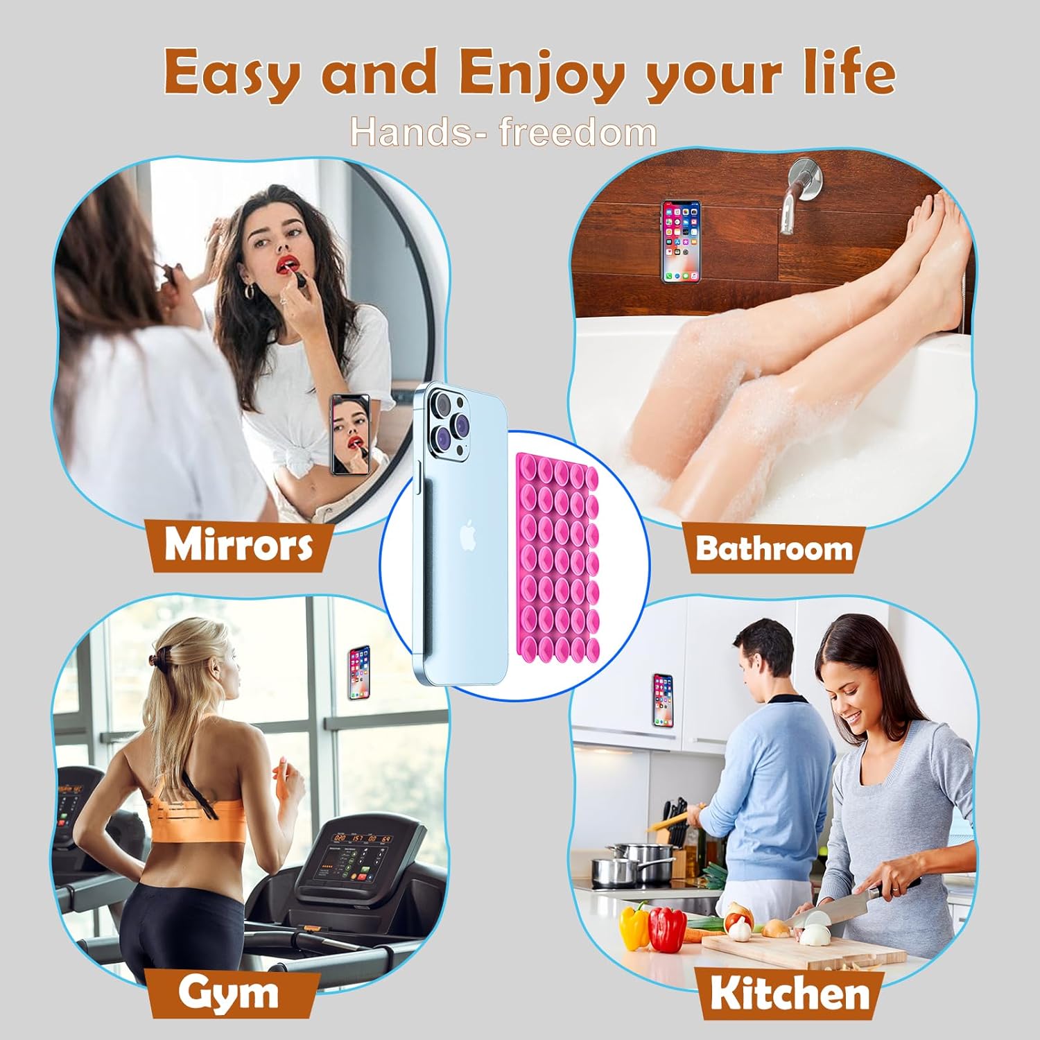 - 【Loved by Young People】You can easily stick your phone to the wall in the gym, locker room, kitchen, dance studio, garage, etc., freeing your hands to do what you like. For example, chatting while doing makeup, watching videos while cooking and washing dishes, watching timers while exercising, etc.