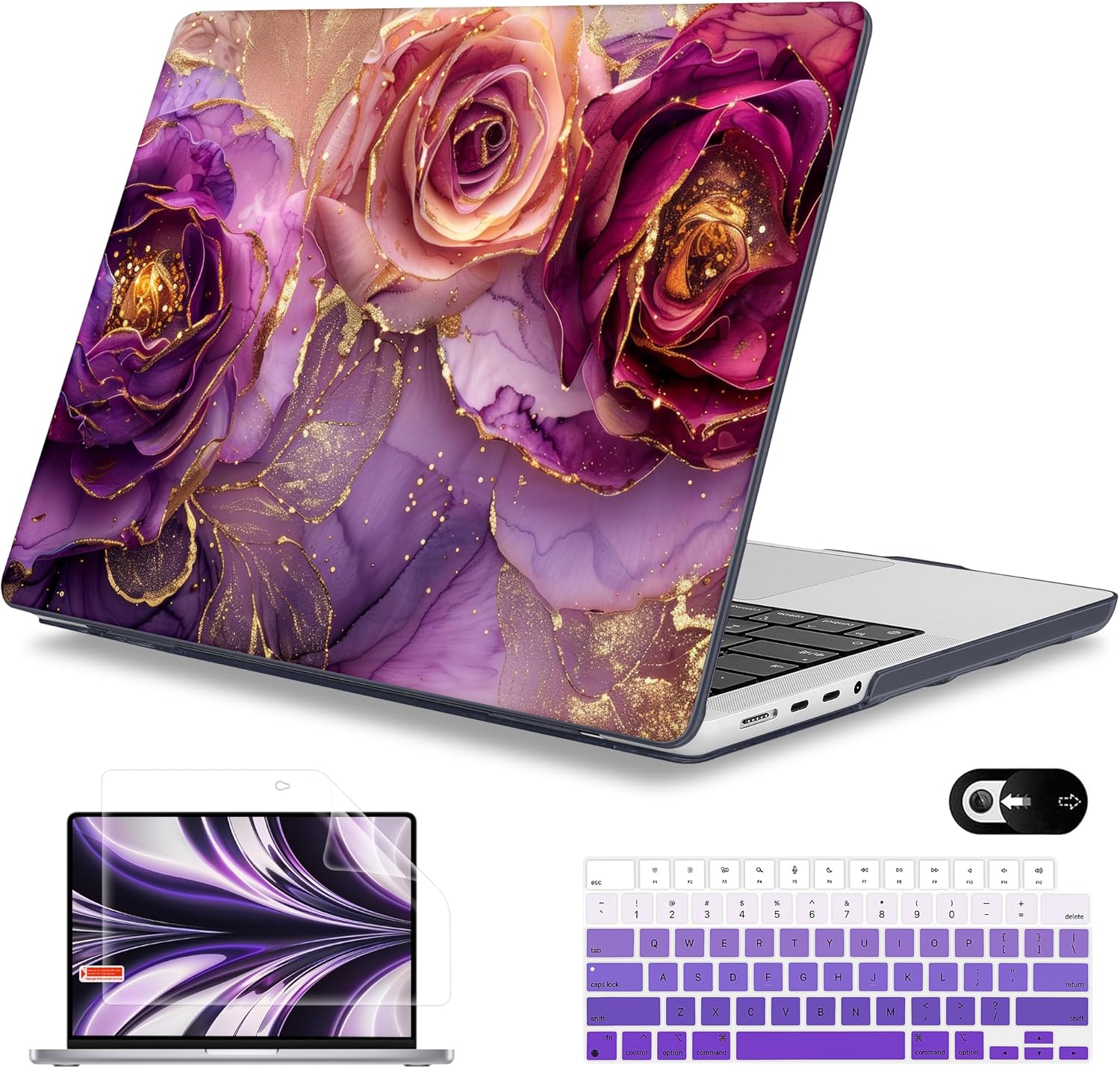 - Package Include: You'll get 1x PC Plastic Hard Designed Shell Case+ 1x Screen Protector + 1x Keyboard cover + 1x Webcam cover