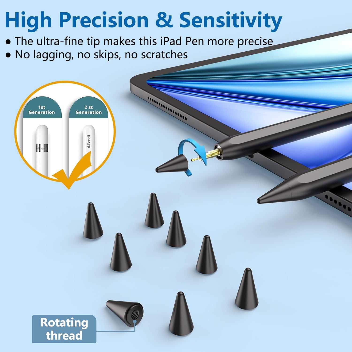 - 8 PCS Pencil Tips: 8 pieces tips per pack (Black). (Note: Stylus pen not included) Feel free to contact us if you have any questions