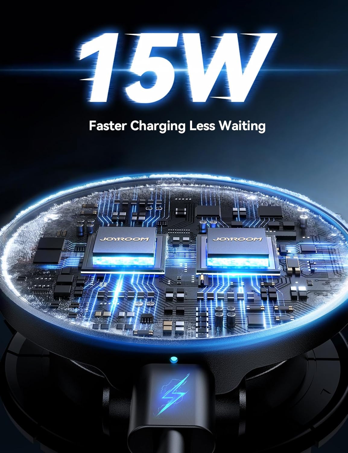- 【15W Fast Wireless Charging】Charger with wireless technology, offers 15W fast charging for your iPhone. Just place it on the charger mount and it will automatically align and lock for stable and efficient charging. Joyroom magsafe car charger fast charging suitable for iPhone 16/15/14/12/13 series and other phones supporting MagSafe charging. For full-speed charging, please use QC3.0+ certified charger (18W minimum). Vehicle USB ports often provide insufficient current (recommend direct connection to charger).