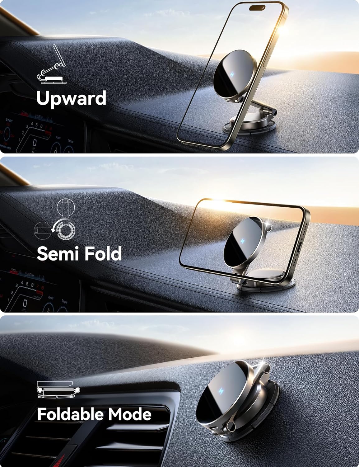 - 【Dual Axis Foldable Design】Foldable and rotatable design, 360°adjustable angle, so you can easily get the best viewing angle. This phone holders for your car mounting magnet will free your hands and make calls and GPS navigation safer.
