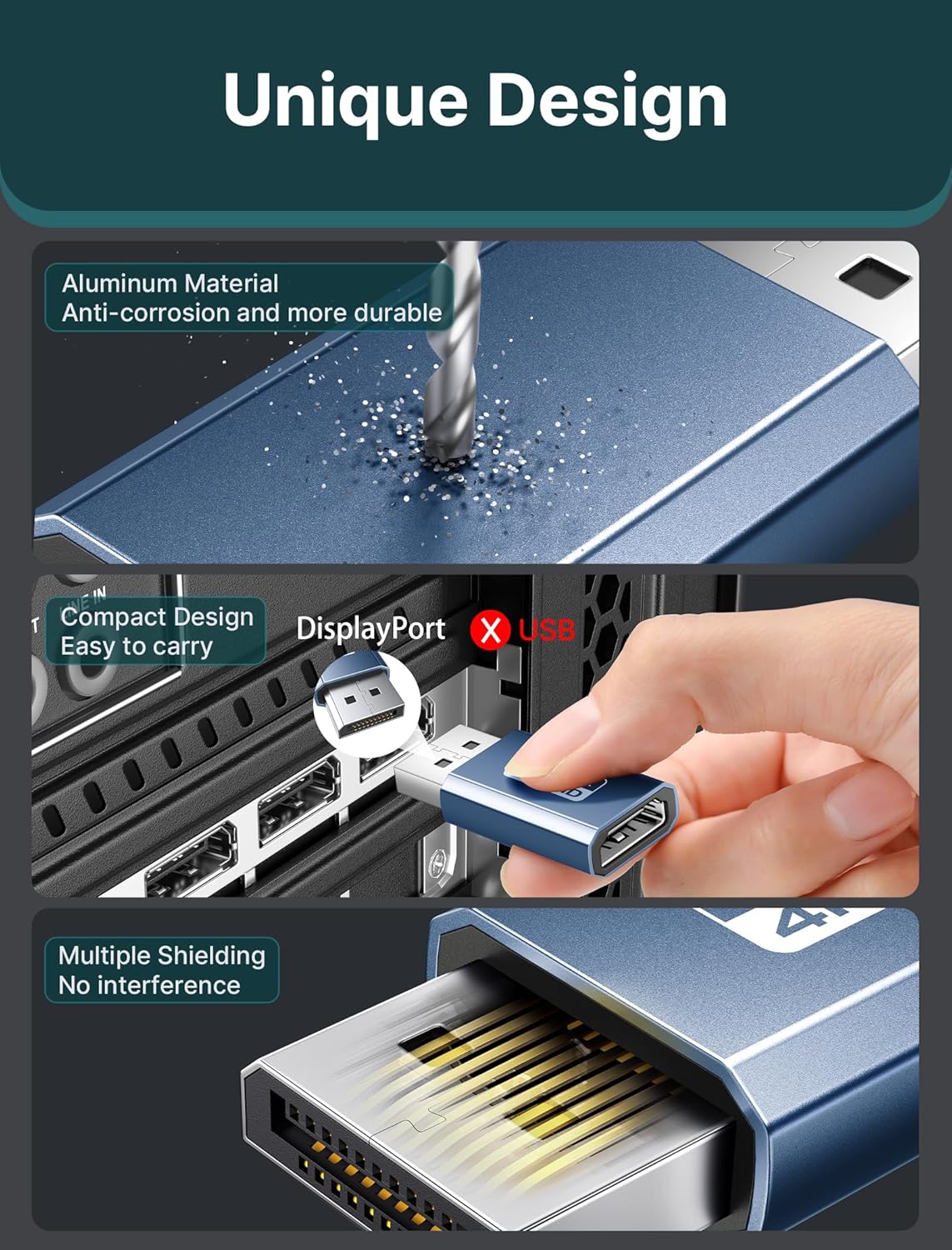 - 【Universal Compatibility】: This DisplayPort to HDMI converter is compatible with laptops (HP ProBook EliteBook, Lenovo ThinkPad), desktop tower (HP, Dell, Lenovo), GPU (AMD, NVIDIA), and other devices with a DisplayPort. Connect to TV, projector, monitor, VR headset, etc