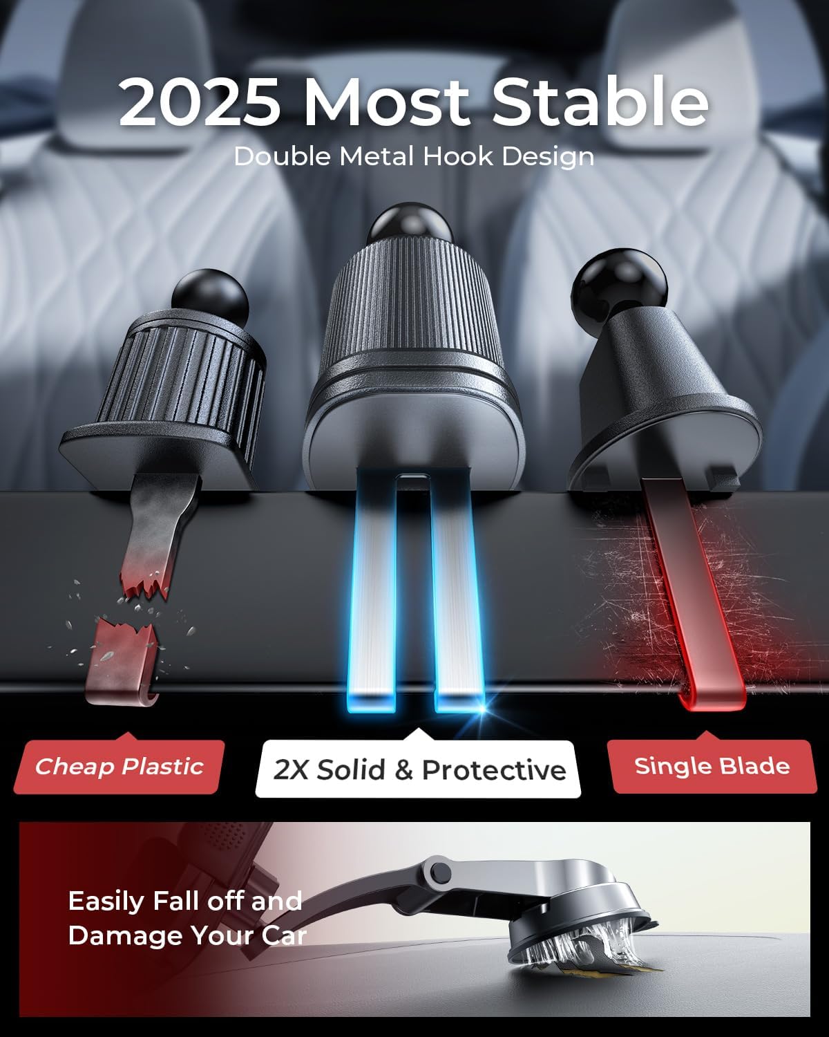 MRGLAS 2025 Upgraded Phone Holders for Your Car with New Metal Hook Clip, Handy Air Vent Cell Phone Car Mount [One Hand Operation], Universal Automobile Cradle for iPhone Android and All Smartphones