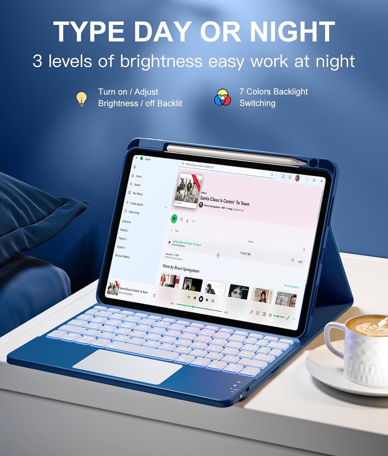 Compatible with iPad Air 11 Inch & Air 5th/ Air 4th Generation Case with Keyboard - Multi-Touch Trackpad, 7-Color Backlit, Detachable Folio Cover for Air 11-inch M3/M2 (2025/2024) (Navy Blue)