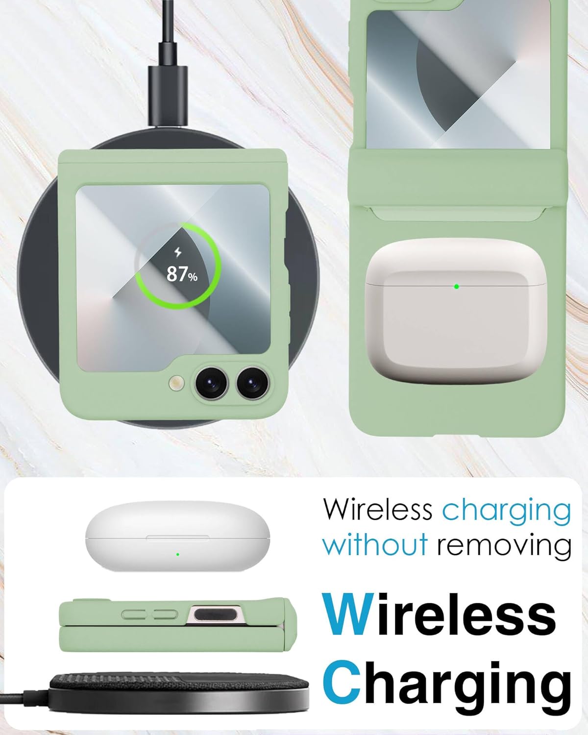 - [Slim and Lightweight Design] Our Galaxy Z Flip 6 Case, Z Flip 7 FE case features an ultra-thin, lightweight profile that doesn't add any bulk to your phone. This Z Flip 6 Case, Z Flip 7 FE Case enhances your grip, reducing the likelihood of accidental drops while maintaining the phone's original elegance. Plus, this Z Flip 6 Case, Z Flip 7 FE Case supports wireless charging, so you never have to remove the case for charging.