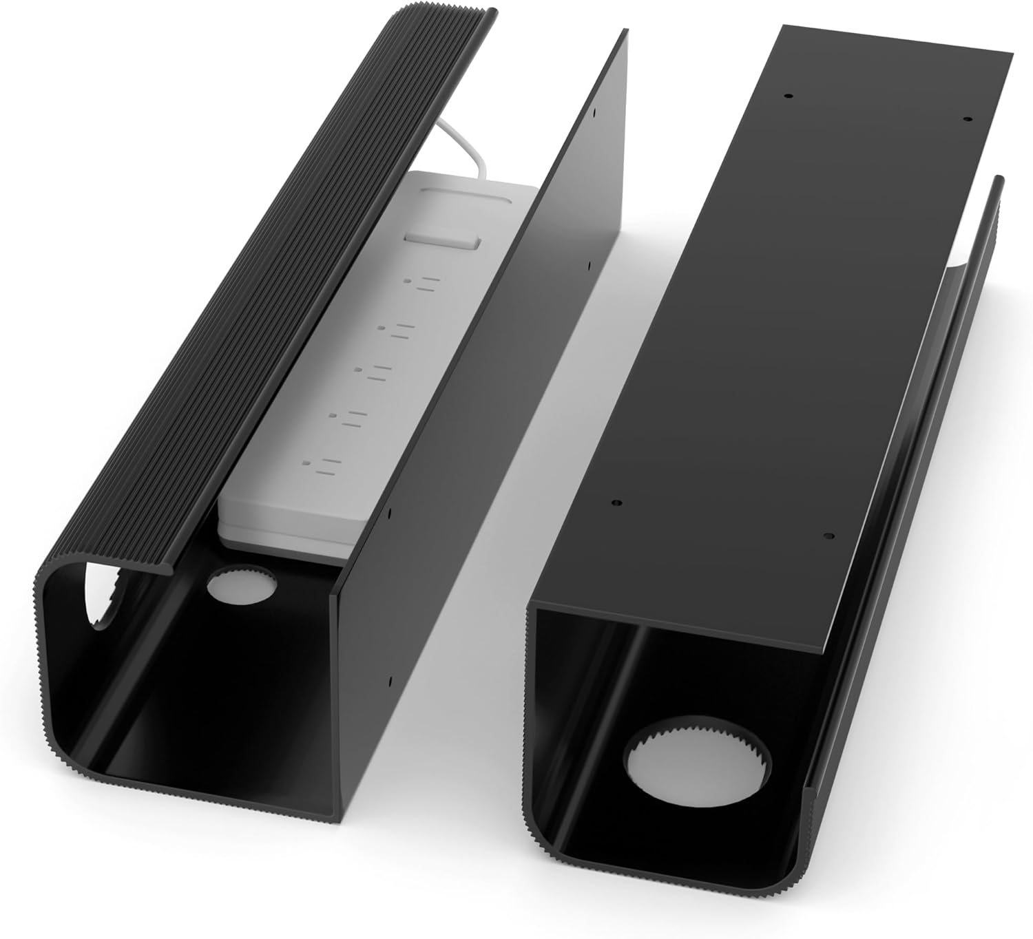 ZhiYo 2 Pack Large Capacity Cable Management Tray 31.5in (2xL15.7in), Thick PVC Under Desk Cable Tray Kit with 4 Cable Clips & 5 Ties, Standing Cord Management Desk Organizer for Office or Home, Black