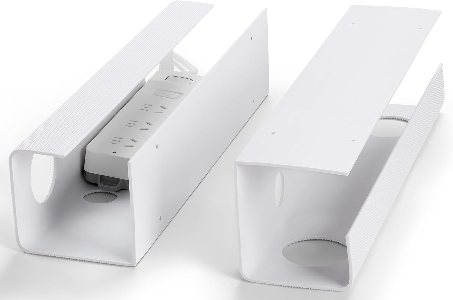 ZhiYo 2 Pack Large Capacity Cable Management Tray, Under Desk Cable Tray 31.5in(2X L15.7in), PVC Standing Desk Cord Management Ideas, Cable Organizer for Office and Home - White