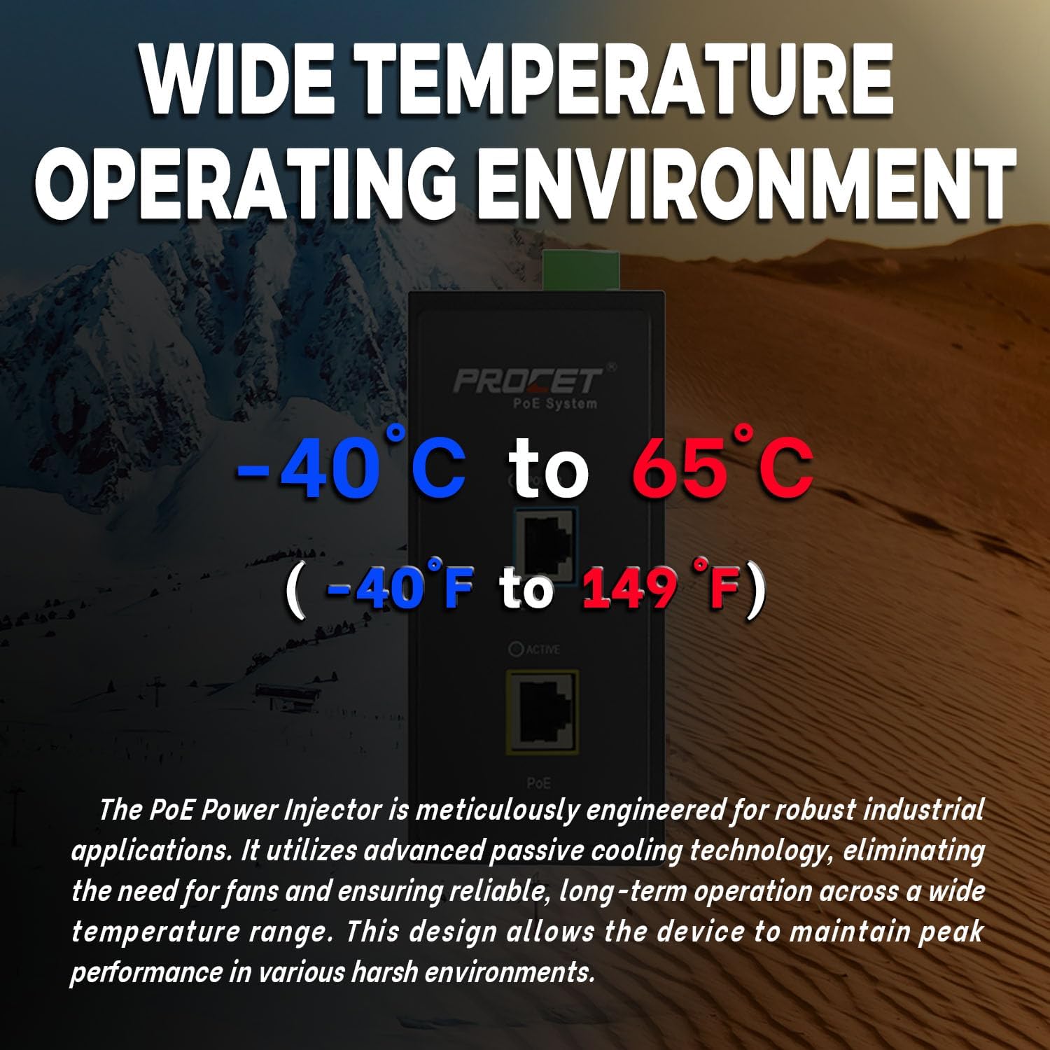 - Industrial Design. High-impact metal shell with DIN Rail mount bracket. Plug & play. Work Temp: -40°F to 149°F (-40℃ to 65℃). 6KV Surge Protection. IP40 rate. Indoor use, but can used outdoors by covering with a waterproof case.