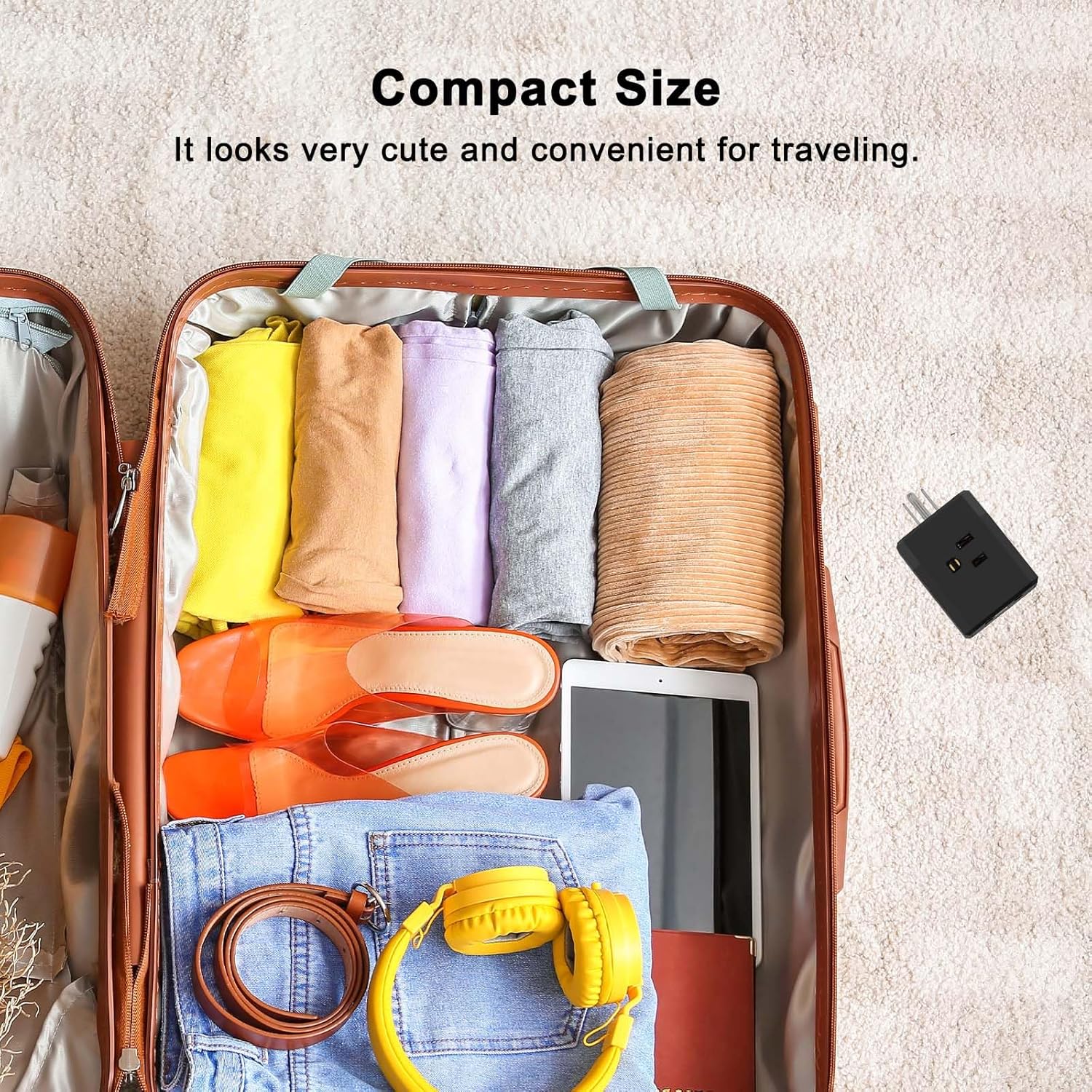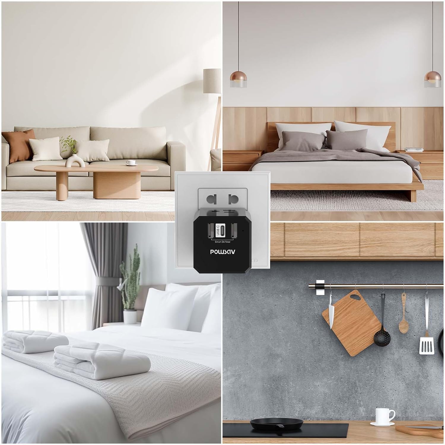 - Portable Travel Adapter: Compact size plug-in adapter only occupies 1 wall socket which is a nice outlet splitter; ideal for smart phones, tablets, laptop, kitchen appliances and other electronic accessories. 4 side outlets and USB ports allow you to charge up to 6 devices simultaneously; ideal for power adapters and bulky plugs.