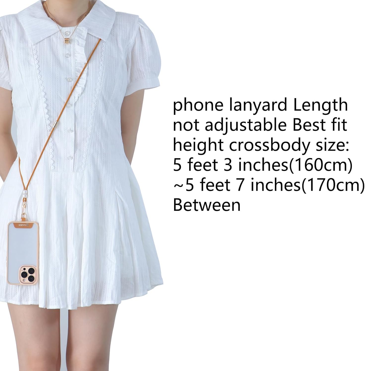 - phone lanyard Length not adjustable Best fit height crossbody size:5 feet 3 inches(160cm)~5 feet 7 inches(170cm) Between phone strap Crafted from high-quality leather, the strap provides a sturdy and comfortable grip for your phone.