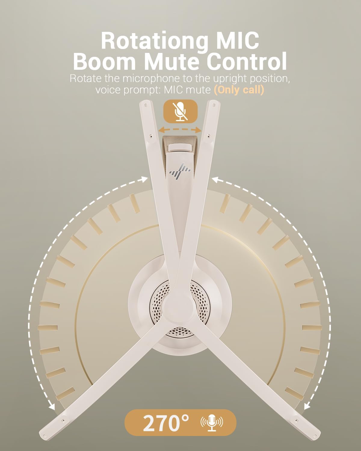 Wireless Headset with AI Noise Cancelling Microphone Bluetooth Headset - Bluetooth V5.2 Headphones with USB Dongle, Charging Base & Mic Mute for Computer/Laptop/PC/iPhone/Android/Cell Phones-White