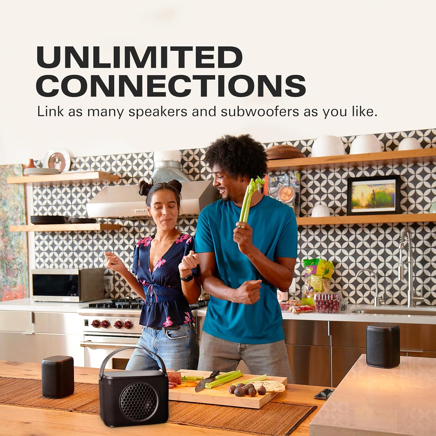 - MULTI PACK OPTIONS: Available in single and multi speaker bundles; includes speakers, USB C charging cables, wall adapters, 3.5 mm aux cable, and manual