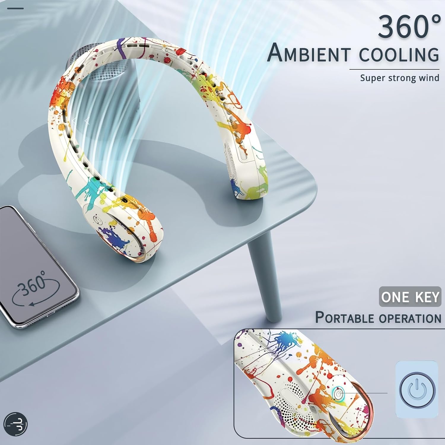 - [Safe Design & Cooling Upgrade] Upgraded Bladeless neck fan, which will not pinch hair or cut your fingers, ensuring safe use for long hair people, children and the elderly. Upgraded air outlet design, 360ยฐ surrounding air outlet, and a new generation of turbine blades are quickly cooled in 3 seconds. Let you feel more gentle cool breeze.