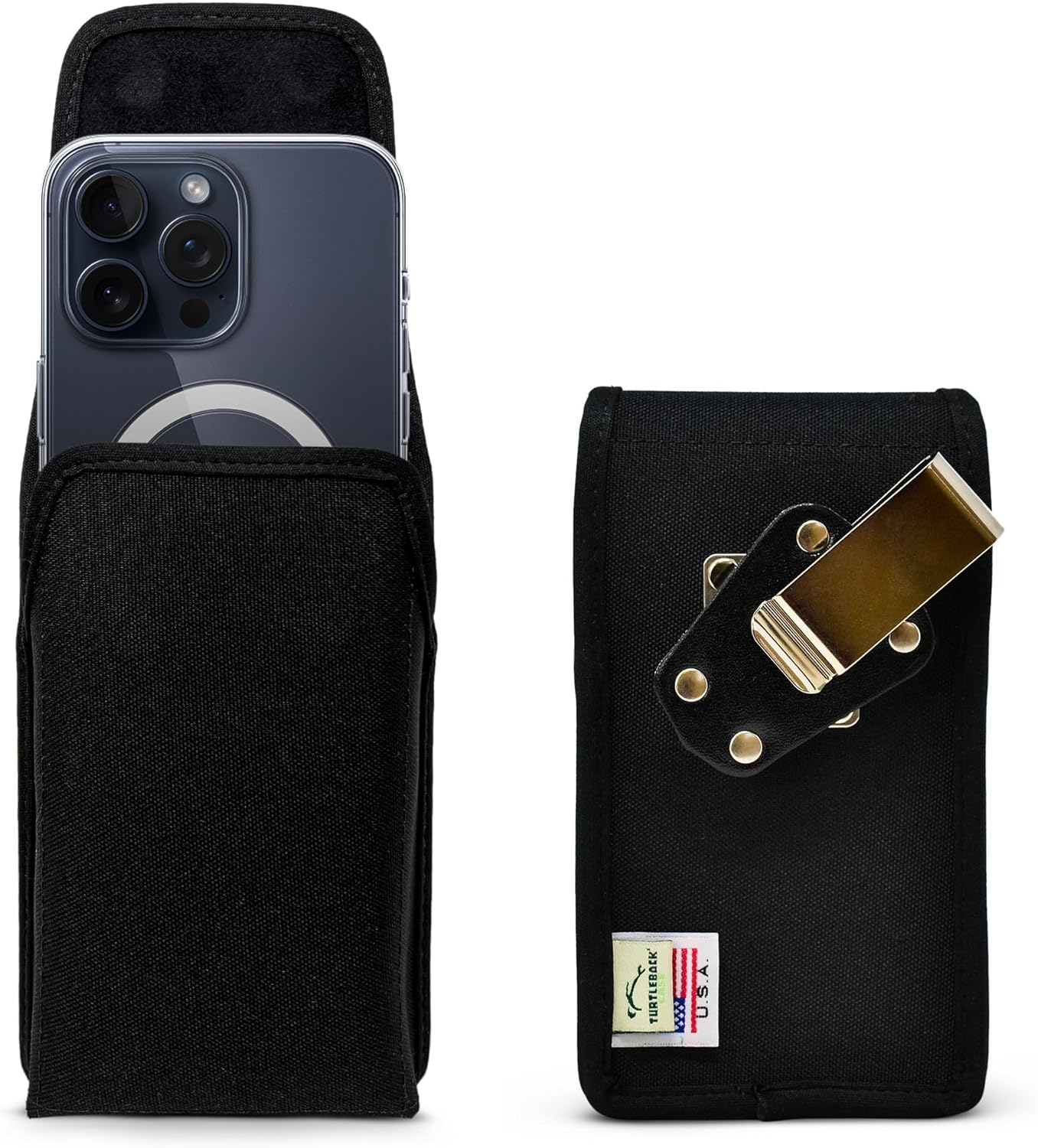 Turtleback Belt Clip for iPhone 16 Pro Max, 15 Pro Max, 14 Pro Max -Small- Fits w/Slim MagSafe Style Cases, Premium Black Nylon, Vertical Belt Holder, Magnetic Closure, HD Rotating Belt Clip