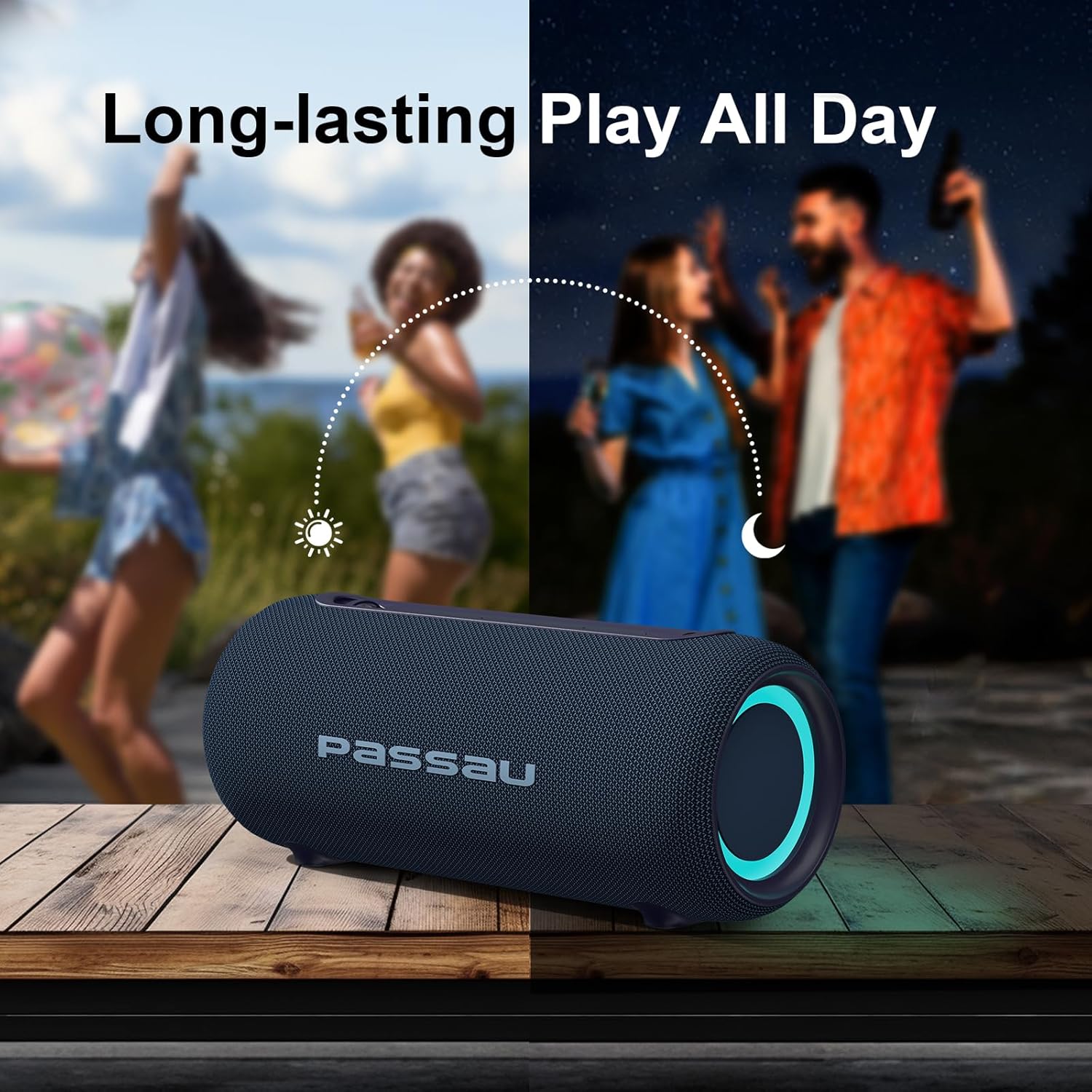 Passau Portable Bluetooth Speakers 40W Peak Loud Stereo Sound, Passive Radiators-Deep Bass, All Day Playtime, Adjustable Strap, BT5.3, IPX5 Wireless Speaker RGB Lights for Indoor Outdoor-Blue
