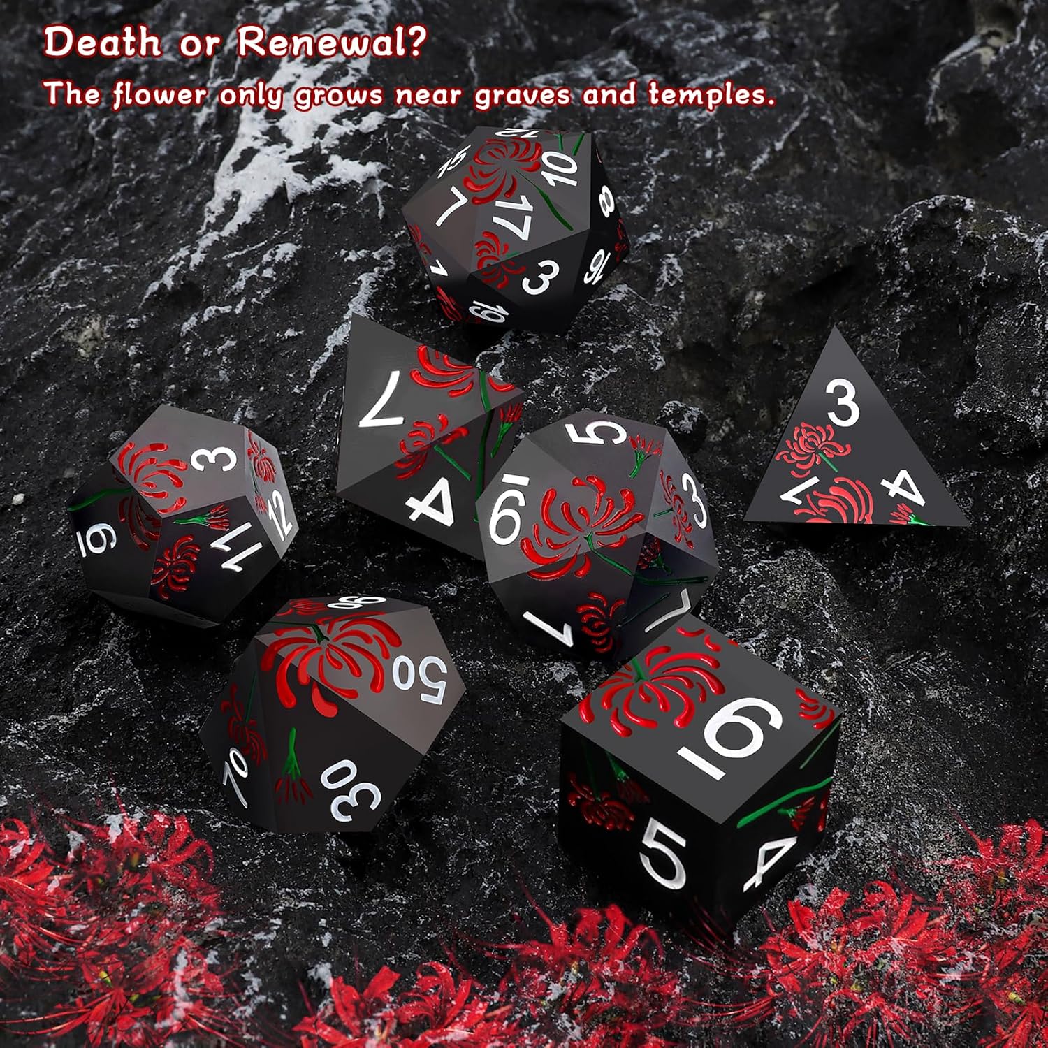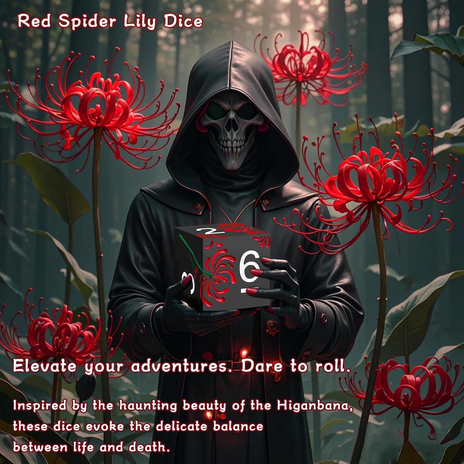 - Mysterious Oriental Design Unique Dice: Inspired by the mysterious red spider lily growing on the border between life and death, the dice are given with magical powers.