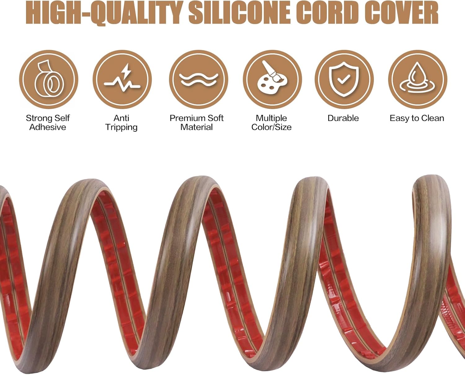 Floor Cord Cover Self Adhesive Cord Hider,3.3FT Cable Management, Extension Strip Protector for Wires, Prevent Cable Trips for Offices, Gyms, Exhibitions Cavity:0.3"(W) x0.28(H) Woodsmokedbrown
