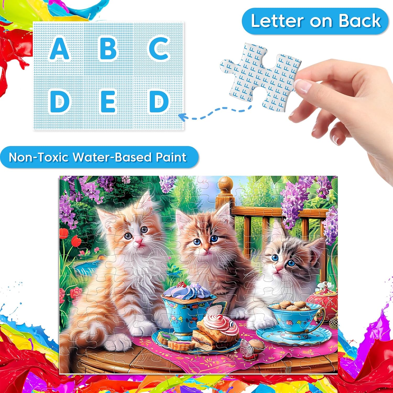 - 🧩Letters mark on the back & Missing Piece Support: The back of the 100 piece jigsaw puzzle is divided into sections marked with letters like "A" to "F," making it easier for kids to complete the challenging puzzle. If you find any missing piece, please let us know and we will provide a solution as soon as possible