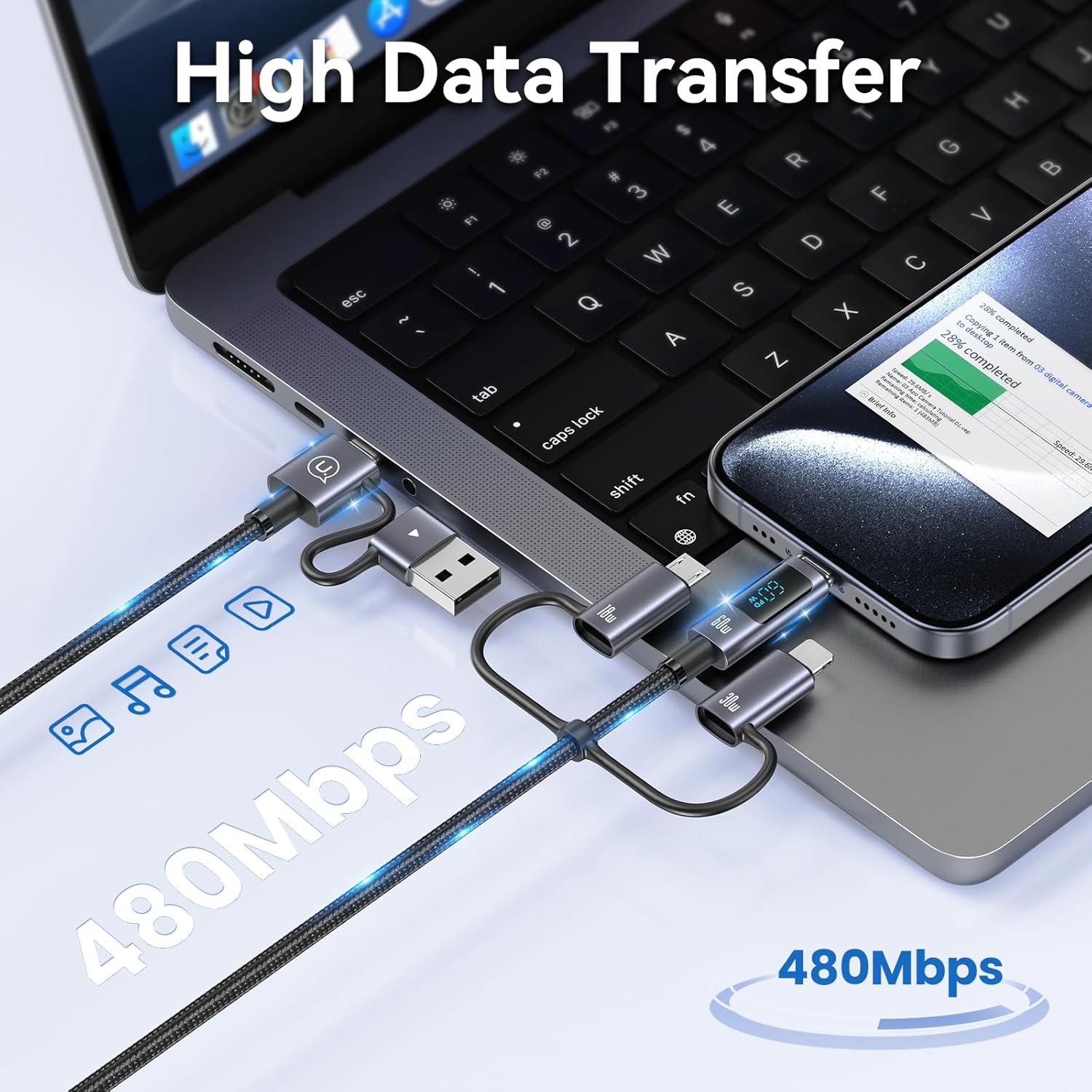 - 【Data transmission&fast charging】This USB C multi charging cable can charge and transfer data synchronously, with a file transfer speed of 480Mbps and a 1G file transfer time of only 30 seconds. It has a high-definition LED display screen and real-time monitoring of charging power. The speed of charging for this multi charging cable can be seen at a glance
