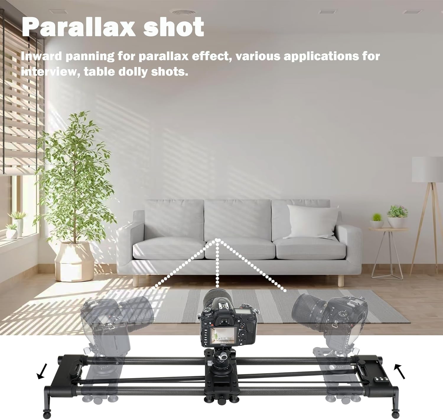 - Can do tracking shot, inward panning for parallax shot and outward panning for panoramic shot. Intuitive App UI for easy setup and using.
