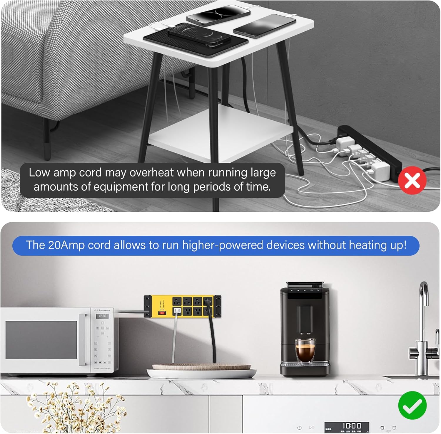 CCCEI Yellow Heavy Duty Power Strip Surge Protector 20 AMP, 8 Outlets 12 Gauge Industrial Shop Garage Metal Multiple Outlets, 10FT Extension Cord 5-15P Adapter High Amp 6-20R T-Slot 20a for Appliance