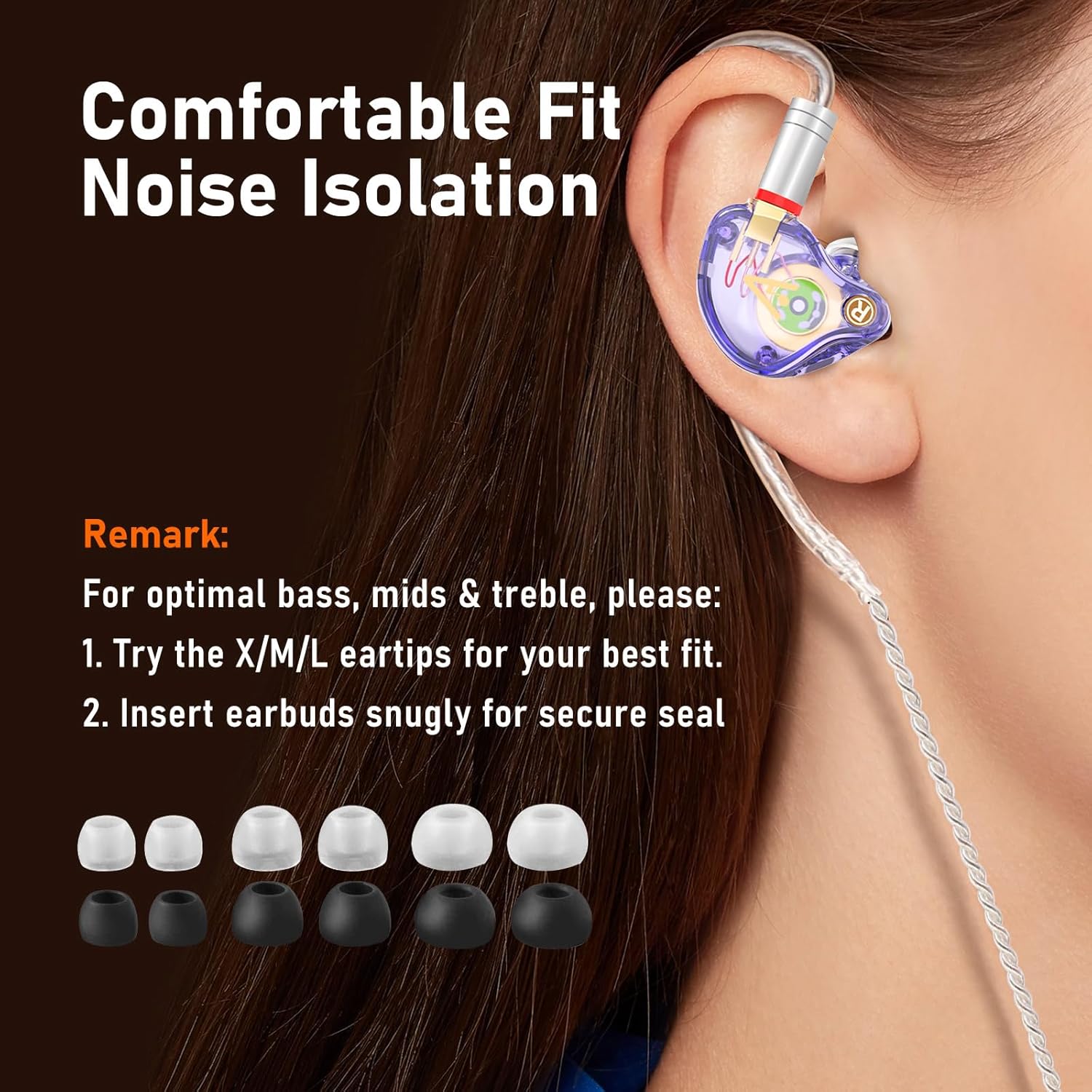 - COMFORTABLE FIT & NOISE ISOLATION - Ergonomically designed to fit the ear canal, Vibes 202MC IEM headphones feature preformed over-ear earhooks for a secure fit and keep cables out of the way. With 6 pairs of soft, breathable eartips (in 2 colors and 3 sizes), they ensure optimal comfort and stability while effectively blocking ambient noise for immersive listening.