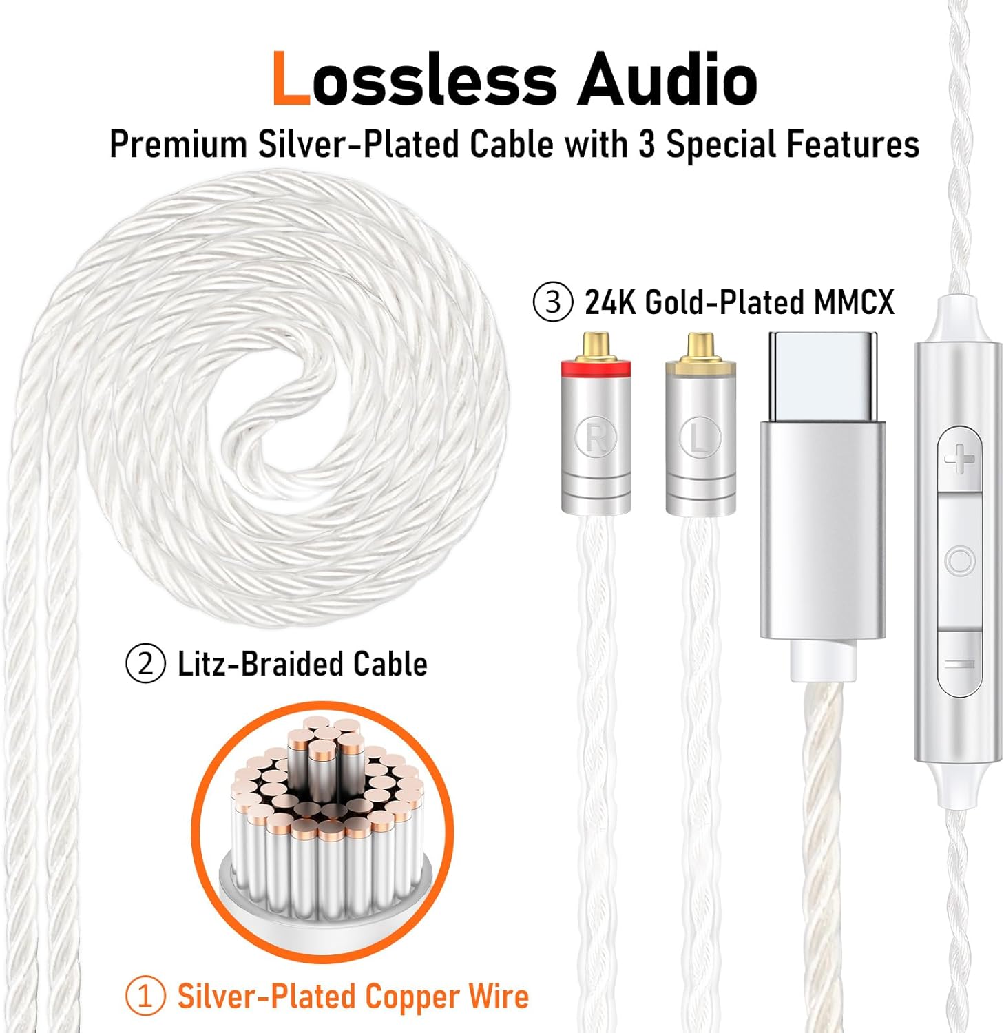 Vibes 202MC USB-C Wired Earbuds - HiFi in Ear Monitor Headphones - Noise Isolating Ear Buds w/ Mic - Clear Sound, Deep Bass & Comfort-Fit Earphones - MMCX to USBC, Silver Plated Cord, Carrying Case